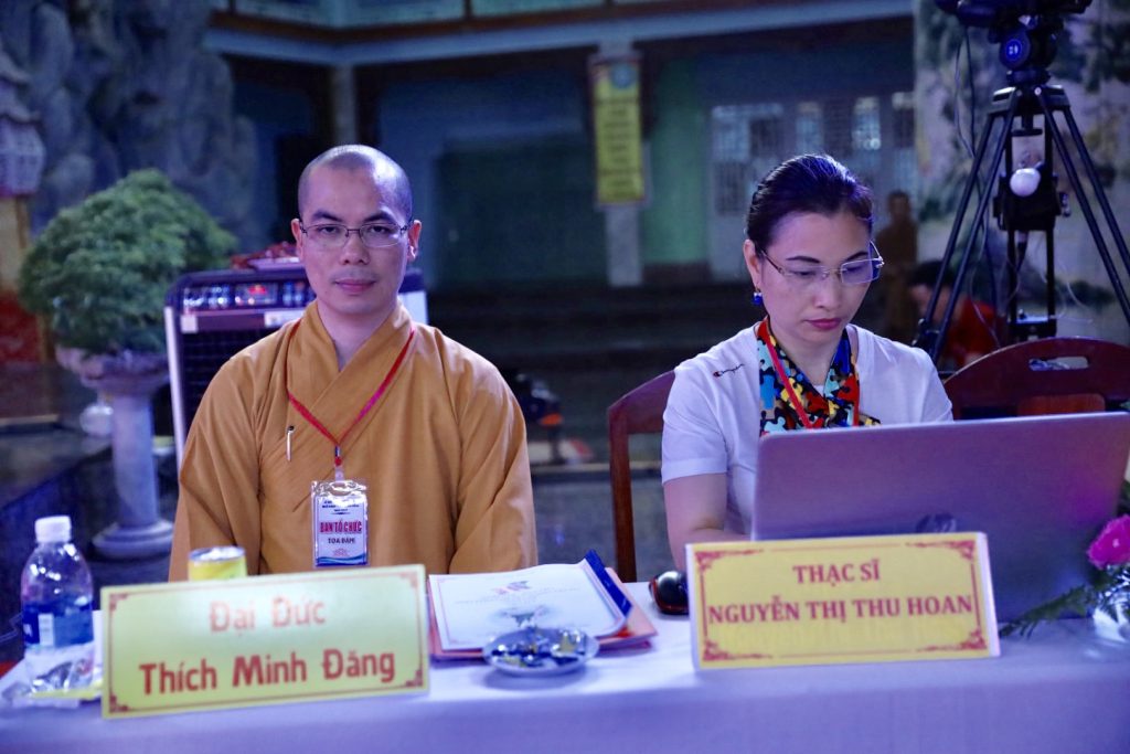 Đại đức Thích Minh Đăng MC buổi toạ đàm
