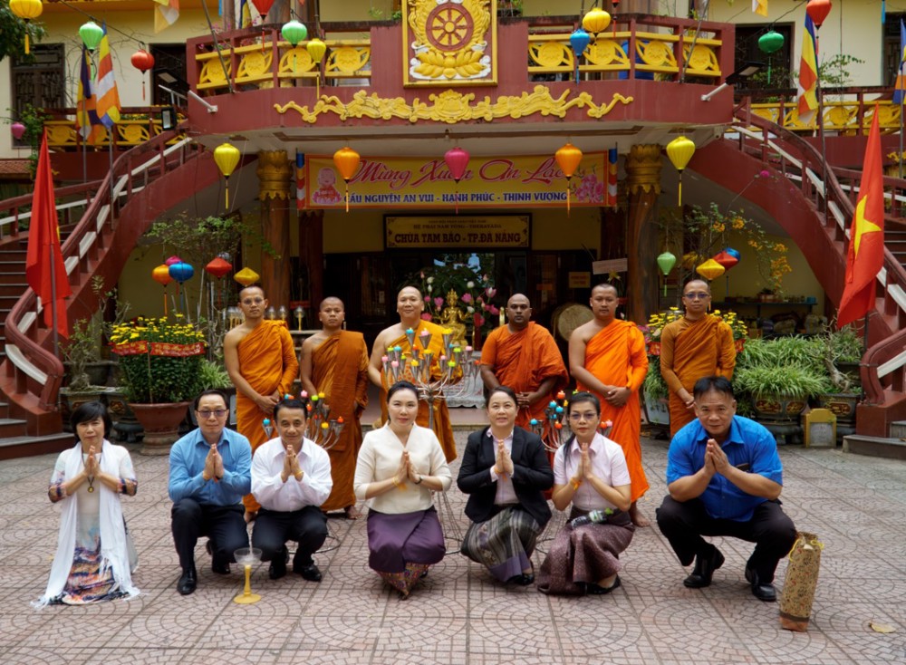 Trong không khí hân hoan của những ngày đầu xuân mới, chiều ngày 11/02/2026 (nhằm ngày 24 tháng Chạp năm Ất Tỵ), đoàn Tổng Lãnh sự quán nước CHDCND Lào tại Đà Nẵng đã đến thăm, chúc Tết và dâng hương cầu nguyện tại chùa Tam Bảo (Phường Hải Châu, TP. Đà Nẵng) – ngôi tổ đình của Phật giáo Nam tông kinh tại miền Trung.