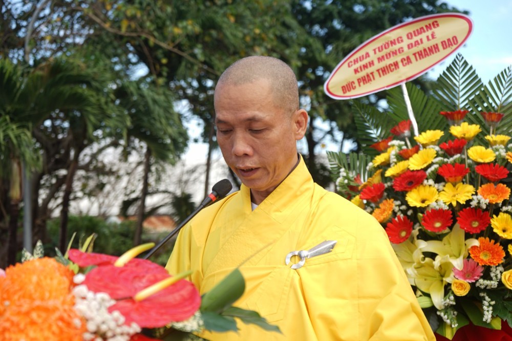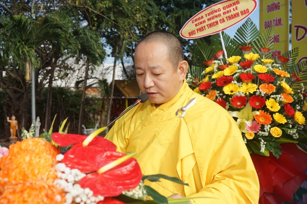 Sau tiết mục dâng hoa cúng dường của các Phật tử chùa Quang Minh, Hòa thượng Thích Đồng Nguyện – Phó trưởng Ban Trị sự, Trưởng ban hoằng pháp GHPGVN Tp Đà Nẵng đã tuyên đọc ý nghĩa ngày thành đạo của Đức Phật Thích Ca Mâu Ni, một sự kiện hy hữu “vô tiền khoáng hậu” có ý nghĩa hết sức quan trọng không chỉ đối với lịch sử Đức Phật và Đạo Phật mà còn đối với lịch sử của nhân loại và hạnh phúc của muôn loài.