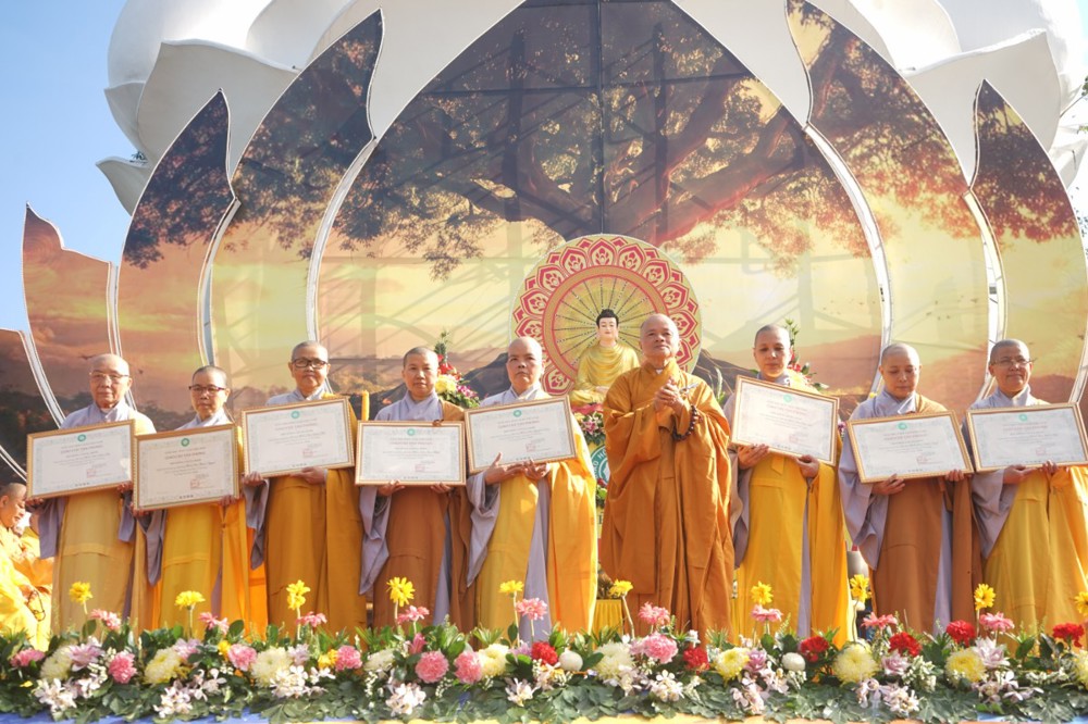 Sau nghi lễ thành đạo, Thượng tọa Thích Thông Đạo thừa ủy nhiệm Trung ương Giáo hội tuyên đọc giáo chỉ tấn phong giáo phẩm cho Chư Tôn đức Tăng Ni trên địa bàn thành phố. Theo đó Tp Đà Nẵng có 2 vị được tấn phong giáo phẩm Hòa thượng, 32 vị được tấn phong giáo phẩm Thượng tọa, 2 vị được tấn phong giáo phẩm Ni trưởng và 37 vị được tấn phong giáo phẩm Ni sư. Chư Tôn đức thành viên Hội đồng chứng minh, Chư Tôn đức Thường trực Ban Trị sự thành phố đã trao giáo chỉ tấn phong đến Chư Tôn đức Tăng Ni trong niềm hoan hỷ của ngày Đại lễ.