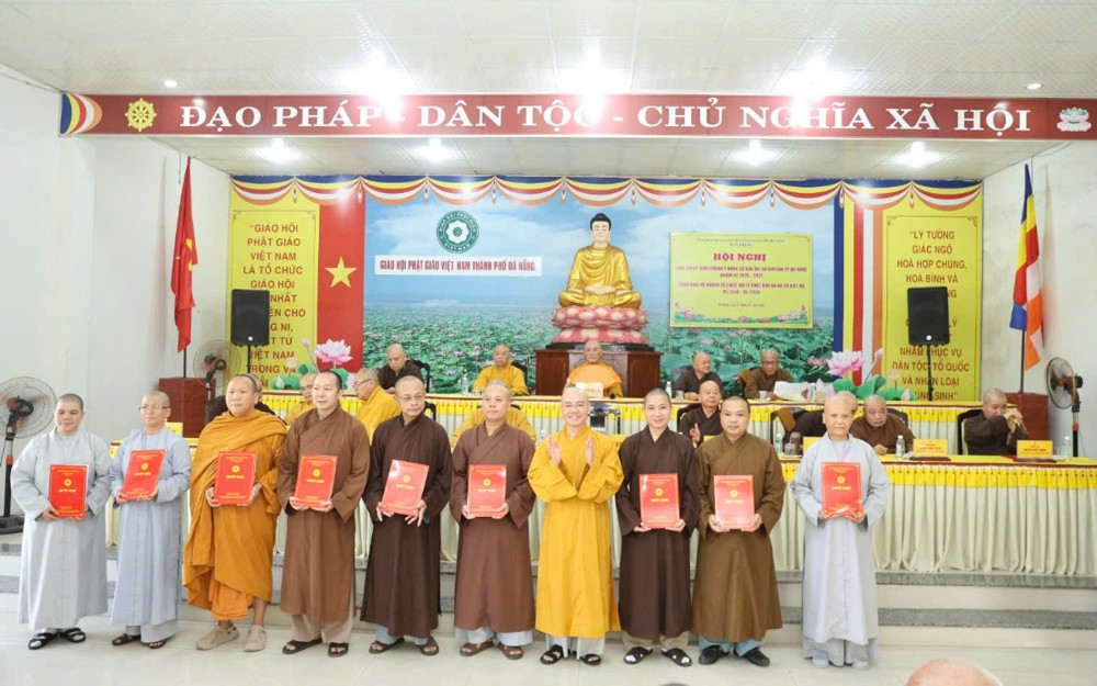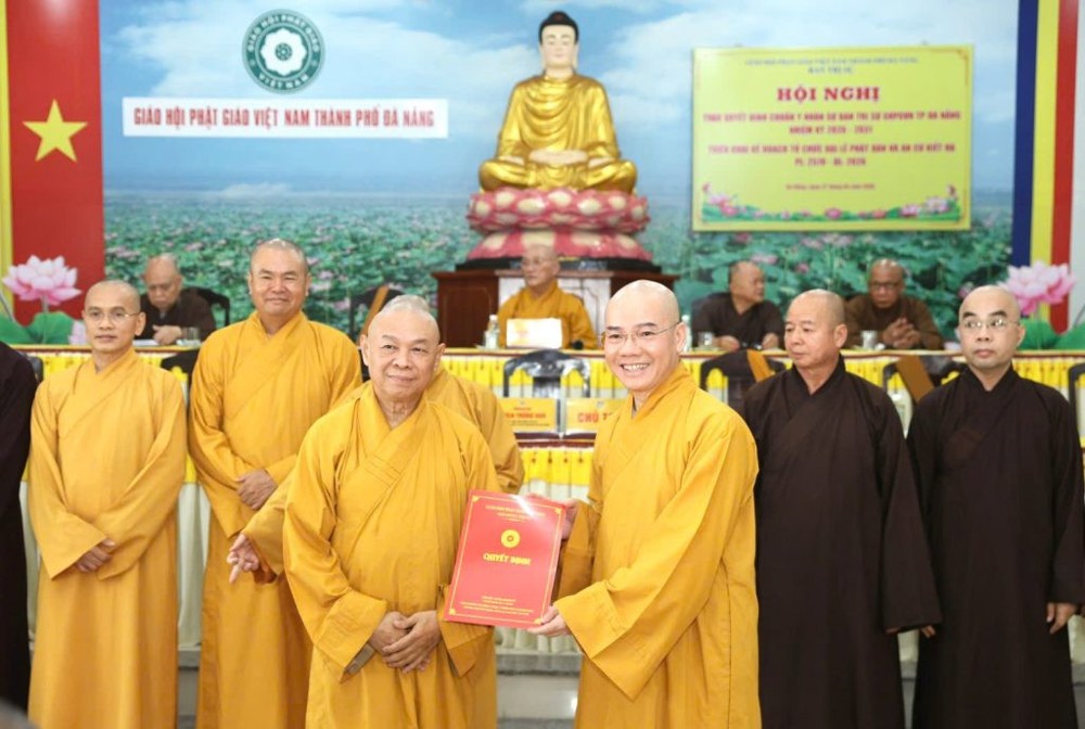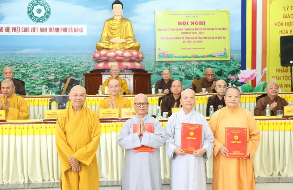 Cũng tại Hội nghị, chư Tôn đức Ủy viên Hội đồng Trị sự tại TP. Đà Nẵng đã thừa ủy quyền Ban Thường trực Hội đồng Trị sự tiến hành trao các Quyết định bổ nhiệm, chuẩn y nhân sự, chính thức kiện toàn bộ máy tổ chức Ban Trị sự nhiệm kỳ 2026–2031, tạo nền tảng vững chắc cho các hoạt động Phật sự trong giai đoạn mới.
