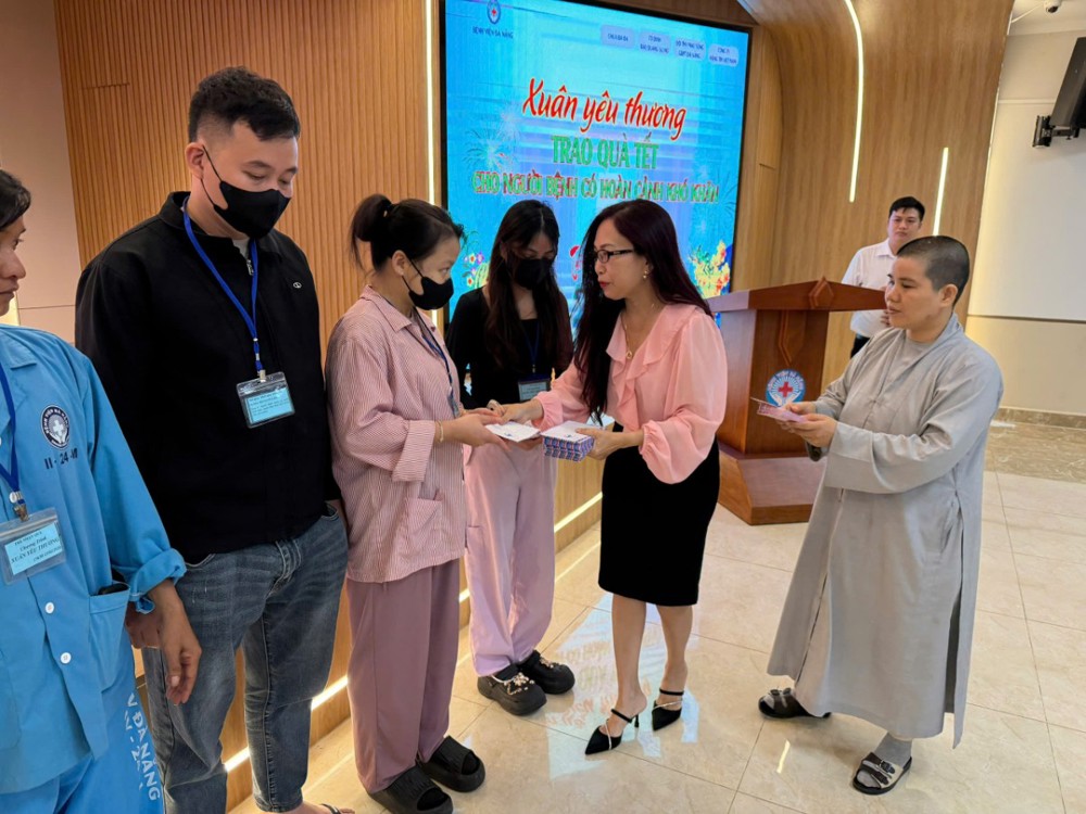 Đãi lao Thượng tọa Thích Thông Đạo - Ủy viên Hội đồng Trị sự, Phó trưởng ban Thường trực Ban Trị sự GHPGVN Tp Đà Nẵng, Trú trì chùa bà Đa và Ni trưởng Thích Nữ Diệu Cảnh – Chứng minh Phân ban Ni giới Đà nẵng, Viện chủ Tổ đình Bảo Quang sư nữ; Sư cô Thích Nữ Thanh Quế đã có lời thăm hỏi và chúc mừng năm mới gửi đến các bệnh nhân, cầu mong bà con một năm mới tật bệnh tiêu trừ, thân khỏe tâm an. Những phần quà tuy không lớn về giá trị vật chất nhưng là chất liệu tinh thần để các bệnh nhân đón tết cổ truyền của dân tộc được ấm áp và hạnh phúc hơn dù đang mang thân bệnh.