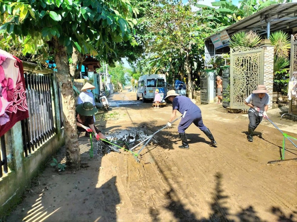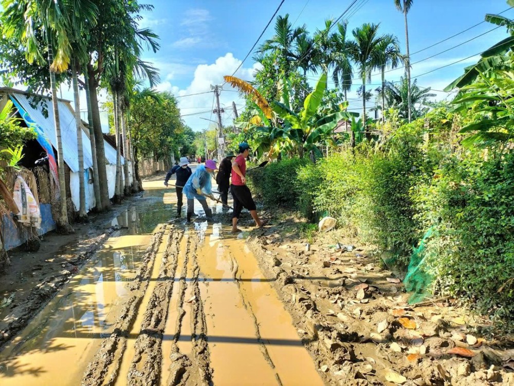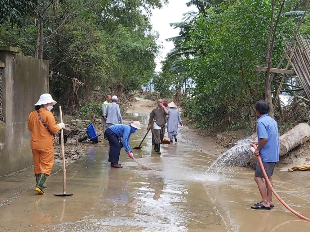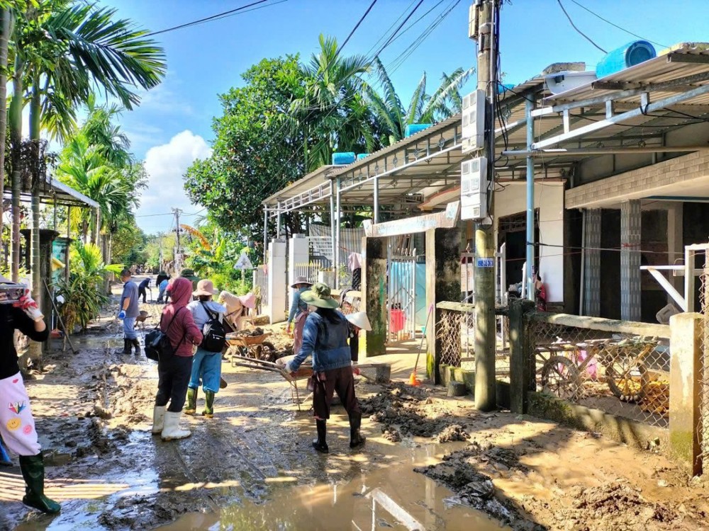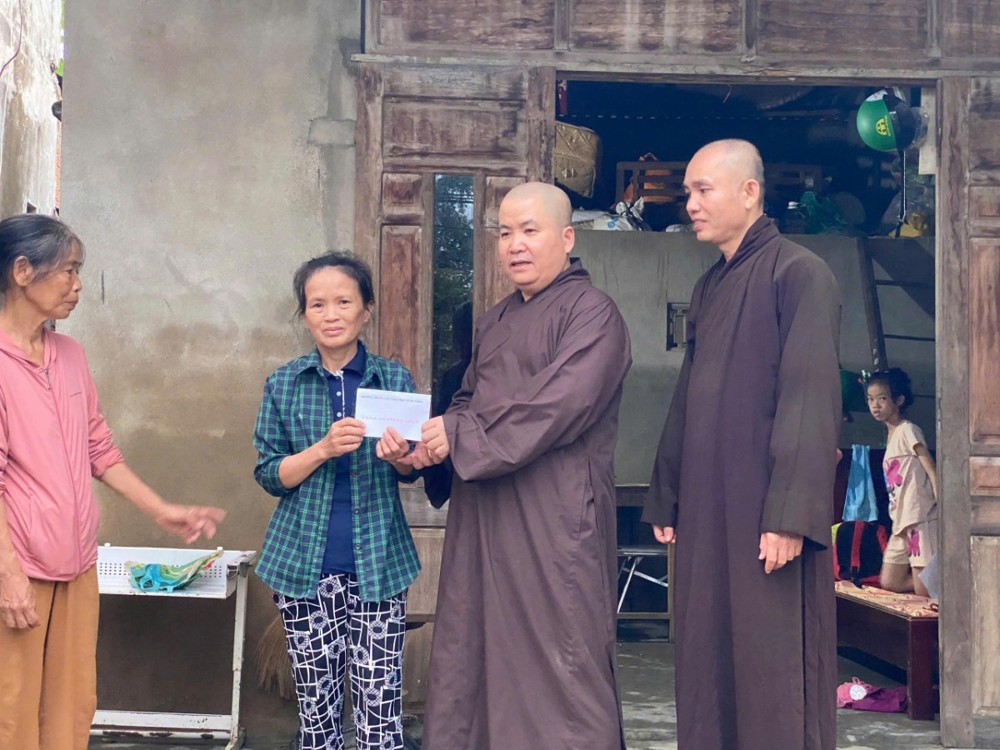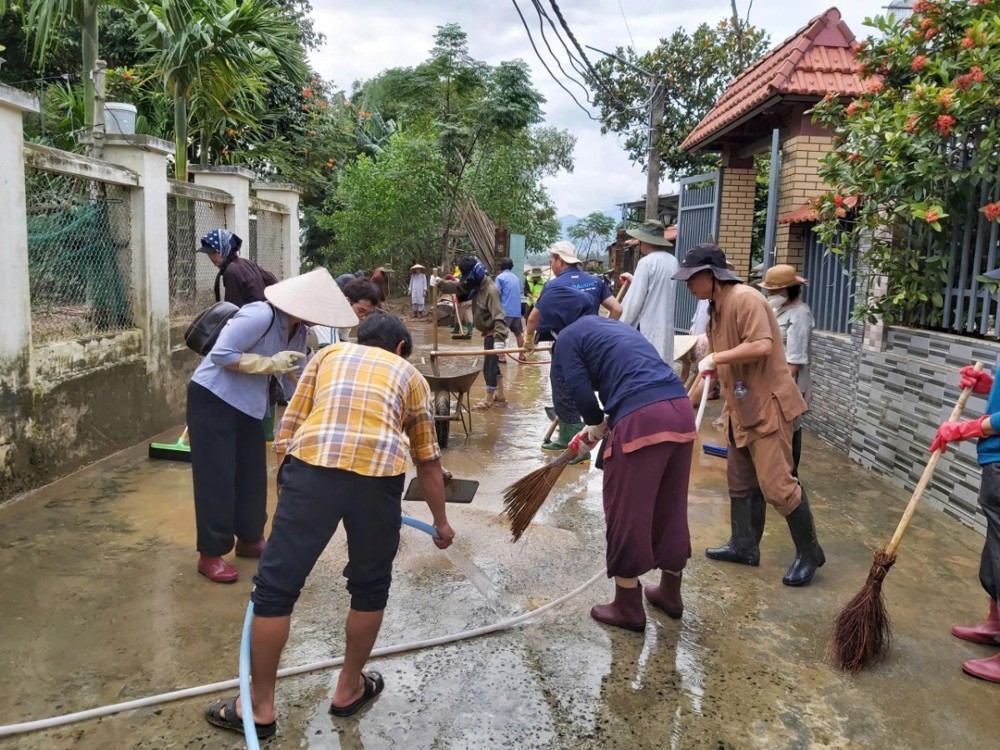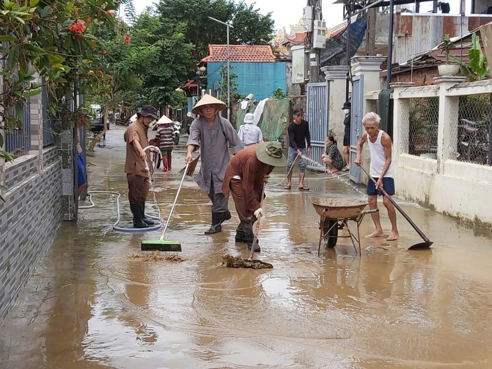 Không dừng lại ở việc trao tặng những phần quà vật chất, đoàn còn trực tiếp xắn tay dọn dẹp bùn lầy, khai thông đường sá, thu gom rác thải và vệ sinh các khu vực bị ngập sâu do mưa lũ. Mỗi bước chân lấm bùn là một lời cầu nguyện thầm lặng, mỗi bàn tay góp sức là một bông hoa của lòng từ bi được nở giữa hoạn nạn.
