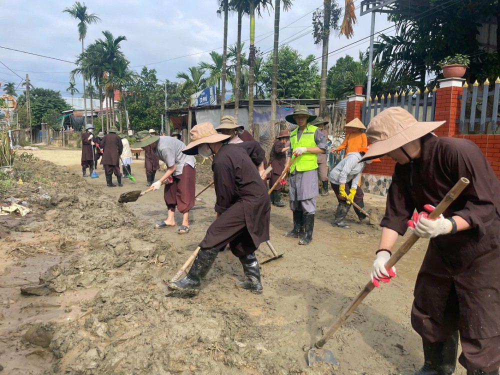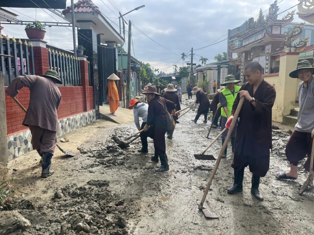 PSO - Với tinh thần “Phụng sự chúng sanh là cúng dường chư Phật”, được sự cho phép của Ban Trị sự GHPGVN Tp Đà Nẵng và sự hỗ trợ của chính quyền địa phương, trong hai ngày 9 và 10 tháng 11 năm 2025, Trường Trung cấp Phật học Tp Đà Nẵng đã tổ chức chương trình “Cùng bà con khắc phục sau bão lũ” tại thôn Mỹ Hảo, xã Vu Gia và thôn Lập Thuận, xã Hà Nha, Tp Đà Nẵng với sự tham gia của hơn 150 Tăng Ni sinh và học viên Cư sĩ.