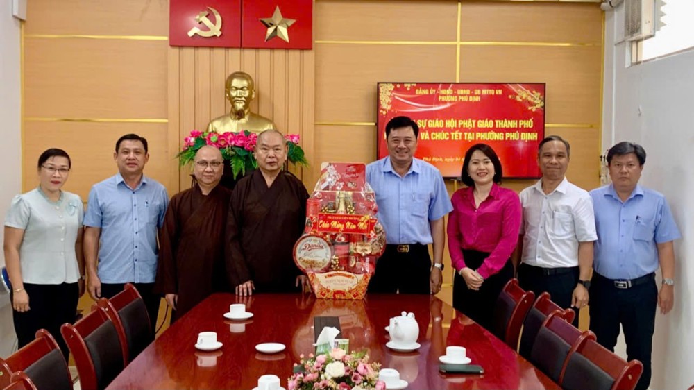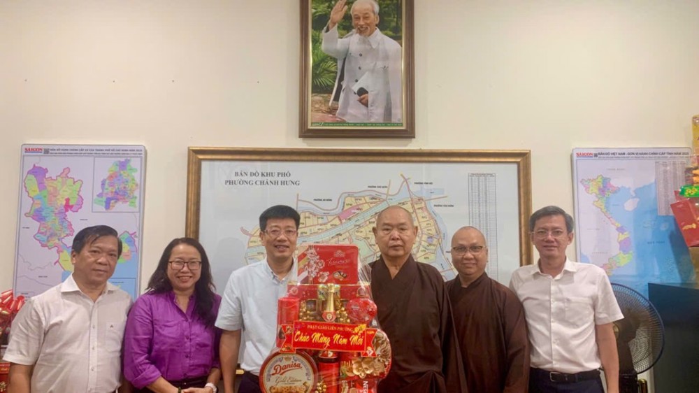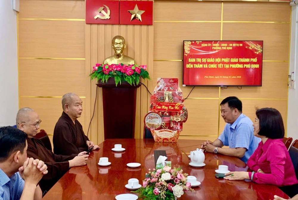PSO - Ngày 04/2/2026 (nhằm ngày 17 tháng Chạp năm Ất Tỵ), nhân dịp Tết Nguyên đán Bính Ngọ 2026, đại diện Phật giáo Liên phường đã tổ chức các đoàn đến thăm và chúc Tết lãnh đạo Đảng ủy, HĐND, UBND, Ủy ban MTTQ Việt Nam các phường Phú Định, Bình Đông, Chánh Hưng (TP.HCM).