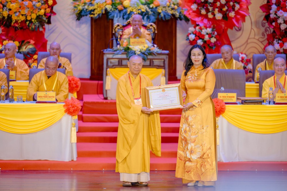 Tiếp theo, Ban Thư ký Đại hội đã thông qua báo cáo tóm tắt kết quả phiên làm việc ngày thứ nhất; trình bày tham luận của Ban Hoằng pháp Phật giáo TP. Đà Nẵng; công bố công tác khen thưởng của Trung ương và chính quyền; đồng thời trao bảng tịnh tài ủng hộ xây dựng nhà Đại đoàn kết với tổng trị giá hơn 2 tỷ đồng, thể hiện tinh thần từ bi, trách nhiệm xã hội của Phật giáo thành phố.