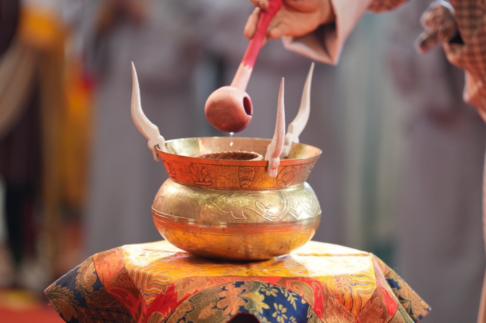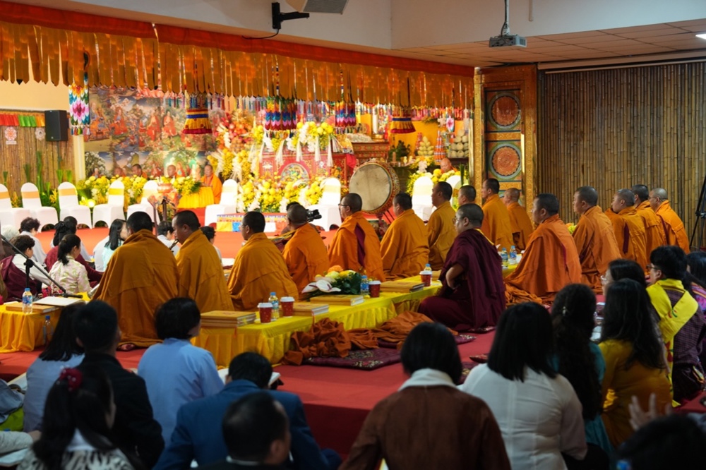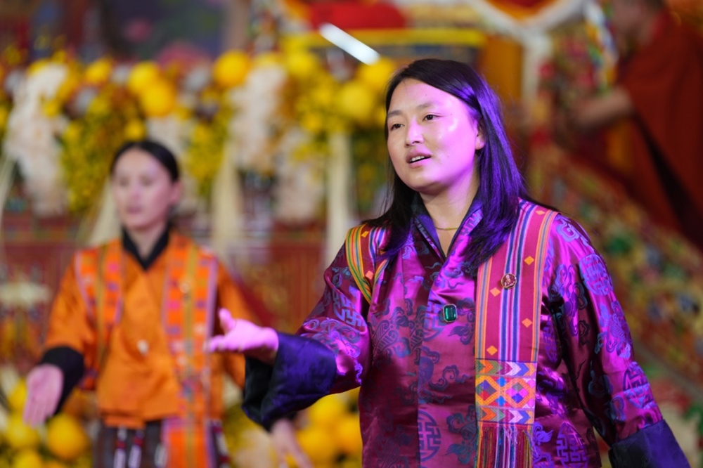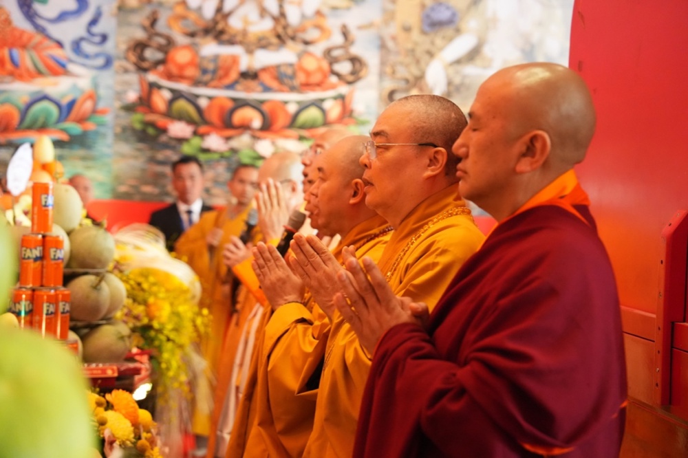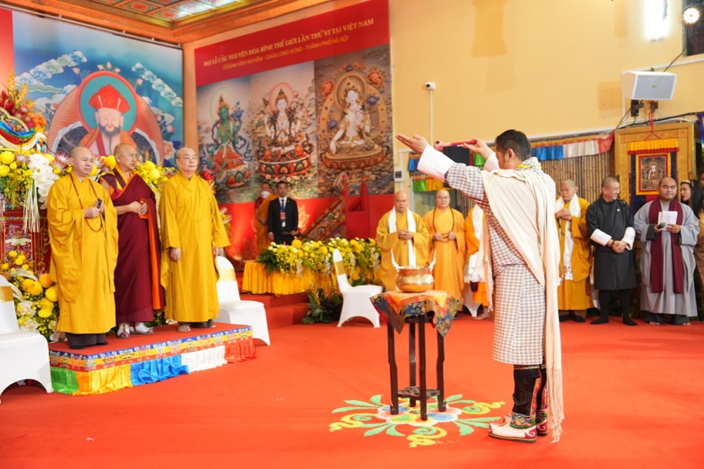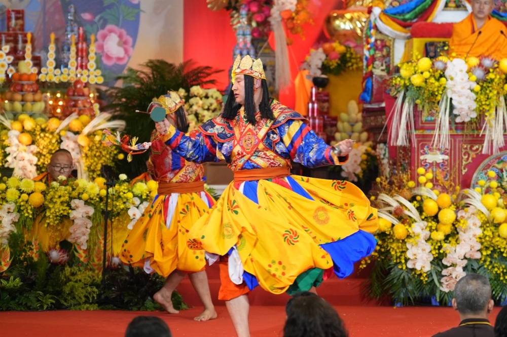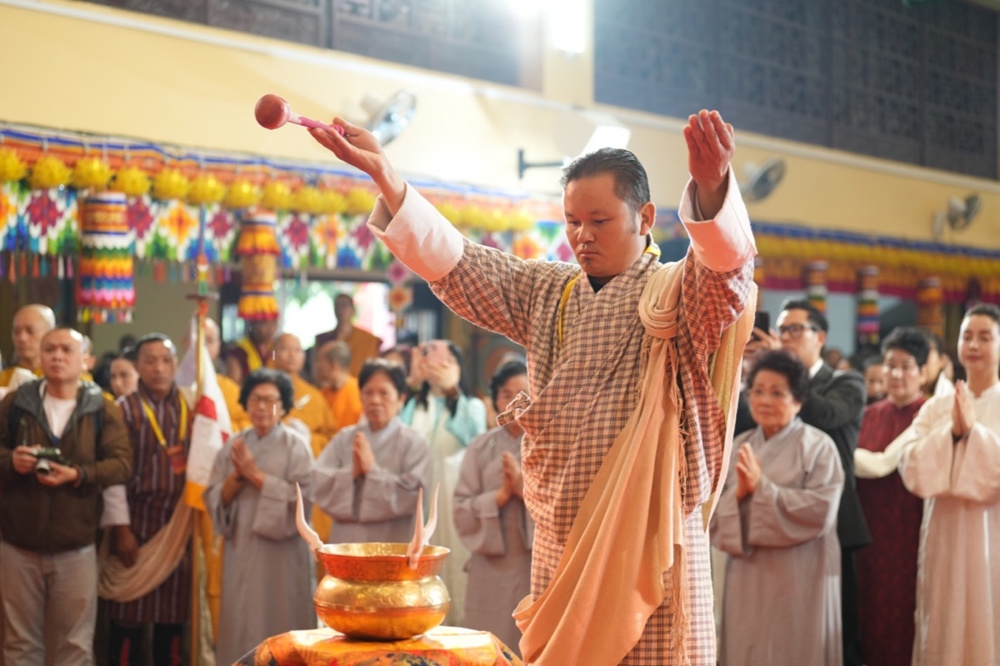Pháp hội mở đầu bằng nghi thức cung nghinh Tăng đoàn Bhutan trong không gian linh thiêng. Những điệu múa truyền thống dâng cúng chư Phật cùng nghi lễ Marchan - nghi thức cúng dường mang ý nghĩa cầu nguyện cát tường, an lành - đã tạo nên bầu không khí trang nghiêm, thanh tịnh, khơi dậy nguồn năng lượng từ bi và hòa bình lan tỏa khắp đạo tràng.