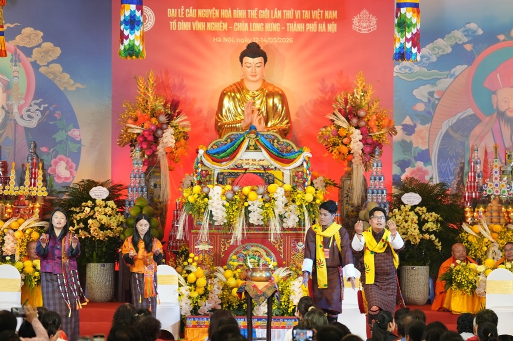 Trong niềm thành kính hướng về Tam bảo, chư Tôn đức Tăng Việt Nam và Bhutan đã cùng cử hành nghi thức niêm hương bạch Phật, nhất tâm cầu nguyện cho thế giới hòa bình, chiến tranh và xung đột sớm chấm dứt, để nhân loại được sống trong hòa hợp, an lạc và phát triển bền vững. Những lời kinh trầm hùng vang lên giữa không gian thiêng liêng như nhắc nhở con người quay về với tâm từ bi và trí tuệ, những giá trị cốt lõi của giáo pháp Đức Phật.