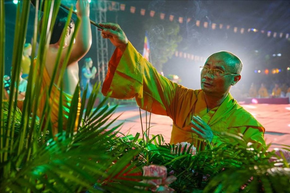 Trong không khí thành kính, trang nghiêm, chư Tôn đức cũng toàn thể đại chúng đã thực hiện các nghi lễ Phật đản truyền thống, dâng hương, tụng kinh Phật đản trong tinh thần tri ân và báo ân tới Đức Thế Tôn, cầu nguyện cho quốc thái dân an và cử hành nghi lễ tắm Phật thiêng liêng, khép lại buổi lễ thành tựu viên mãn trong niềm hoan hỷ vô biên của những người con Phật.