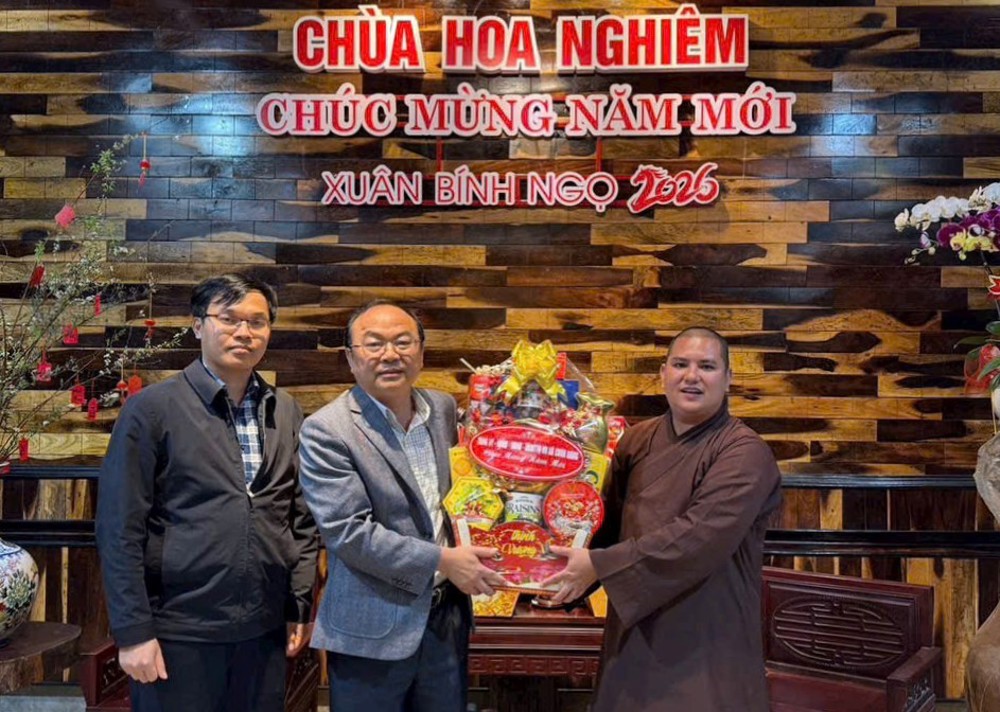 PSO - Ngày 11/02/2026, bản tự Hoa Nghiêm – ngôi chùa nhỏ tại xã Quảng Phú – vô cùng hoan hỷ đón nhận những phần quà và lẵng hoa chúc mừng năm mới từ Đại gia đình con cháu cụ Y Ngông Niê Kđăm; Ban Thanh niên Công an tỉnh; Ban Phụ nữ Công an tỉnh; Đảng ủy – HĐND – UBND – Ủy ban MTTQVN xã Cuôr Đăng; NPĐ Quang Tâm – xã Quảng Phú; Co.opmart Cư M’gar; Công ty TNHH Lan Vy Đắk Lắk; gia đình bà Bùi Thị Hà; gia đình bà Võ Thị Mỹ Trinh – CVP Đảng ủy xã Cuôr Đăng.