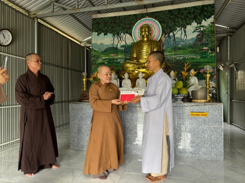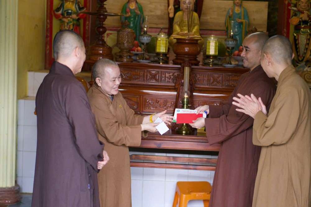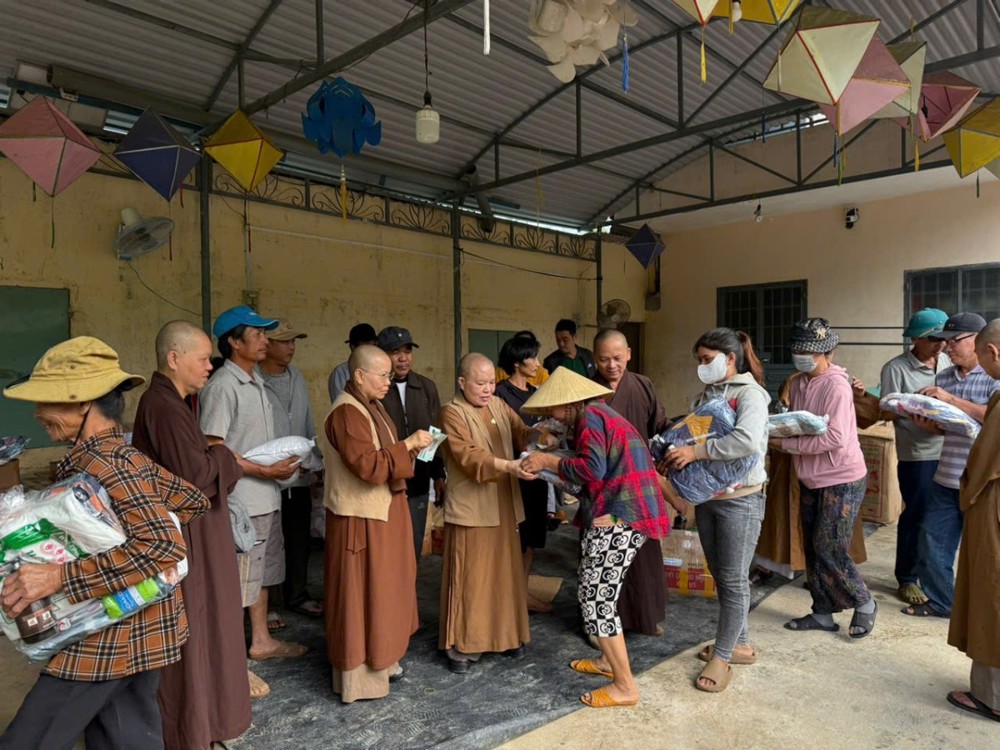 Dịp này, phái đoàn đã cúng dàng 20 chùa trên địa bàn tỉnh Phú Yên (cũ) bị thiệt hại nặng nề do lũ lụt, nhiều chùa bị hư hỏng hoàn toàn, kinh sách bị ướt, rách nát, mỗi chùa 10 triệu đồng, với tổng số tiền là 200 triệu đồng để các chùa khắc phục khó khăn sau lũ. Ni sư trưởng đoàn đã tới thăm hỏi chư Tôn đức Tăng Ni các chùa và mong chư tôn đức vượt qua khó khăn, tiếp tục công cuộc hoằng dương chính pháp, làm lợi lạc quần sinh.