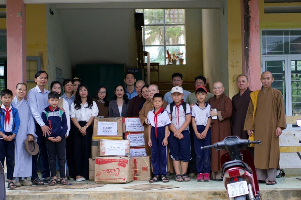 Ngoài ra, đoàn từ thiện đã trao 50 thùng vở ô ly, cùng đồ dùng học tập cho các em học sinh đang học tại các trường tiểu học An Dân (Điểm trường An Thổ) và trung học cơ sở xã Tuy An Bắc, giúp các em có sách vở, đồ dùng học tập, ổn định lại trường lớp…Với tổng số tiền của chương trình từ thiện là 834 triệu đồng.