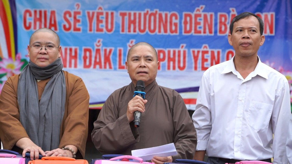 Tại buổi trao quà, Ni sư Thích Nữ Như Hiền đã gửi đến bà con địa phương những lời phát biểu chân tình và đầy xúc động. Ni sư bày tỏ sự sẻ chia sâu sắc trước những mất mát, thiệt hại mà người dân nơi đây đang phải đối mặt sau thiên tai, đồng thời động viên mọi người giữ vững niềm tin, đoàn kết vượt qua giai đoạn khó khăn này. Ni sư nhấn mạnh rằng Phật giáo luôn đồng hành cùng cộng đồng trong mọi hoàn cảnh, mang tình thương và sự đùm bọc đến với những nơi cần được nâng đỡ.