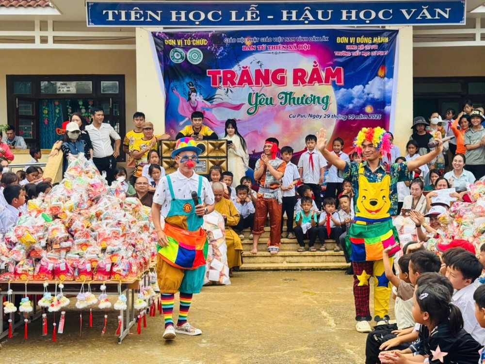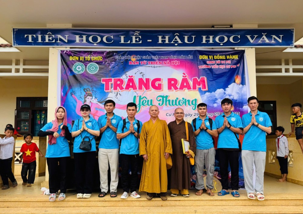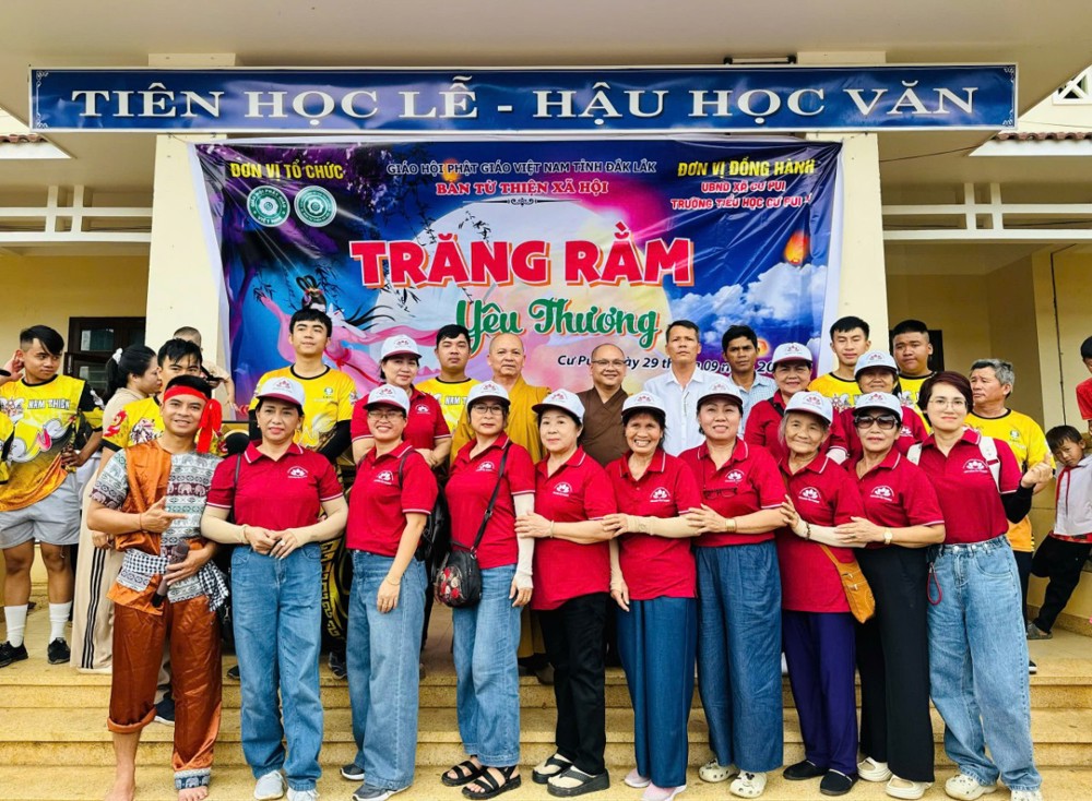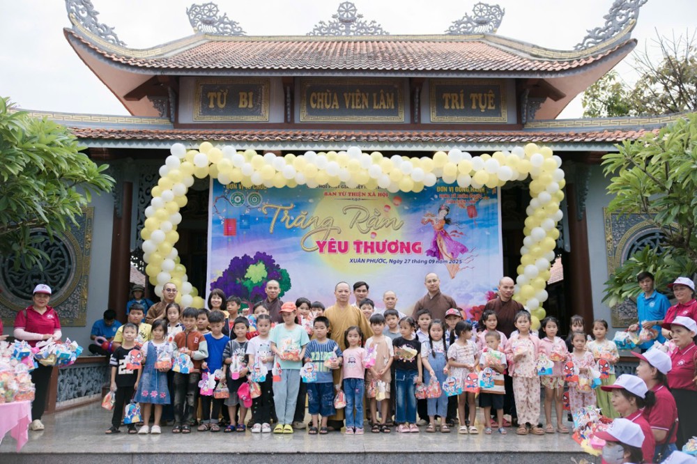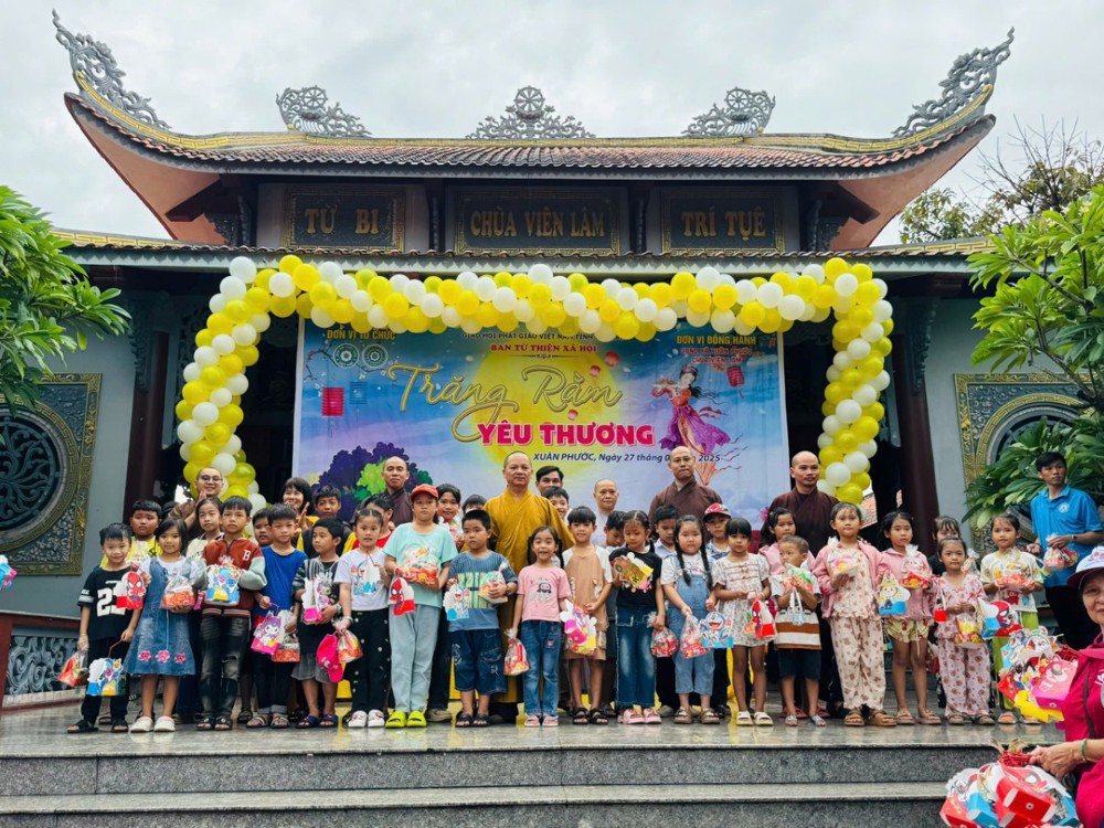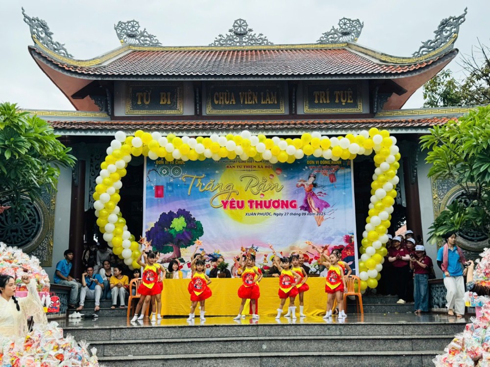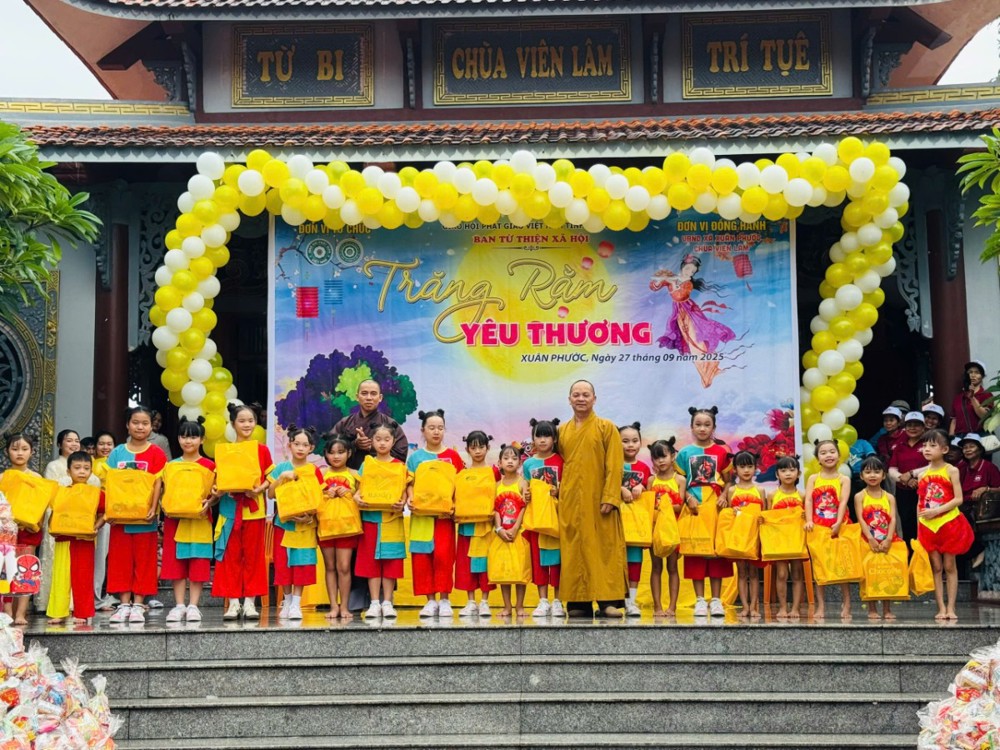 Sáng ngày 27/9/2025 (nhằm ngày mùng 6/8 năm Ất Tỵ) BTTXH đã kết hợp với chùa Viên Lâm, ban TTXH tỉnh tổ chức chương trình “Trăng Rằm Yêu Thương” với hơn 1300 em thiếu nhi tại xã Xuân Phước, tỉnh Đắk Lắk. Chương trình có sự chứng minh tham dự của: TT.Thích Trí Nghĩa – Phó BTS, Trưởng ban Từ thiện Xã hội GHPGVN tỉnh Đắk Lắk, Trưởng ban tổ chức; ĐĐ. Thích Quảng Hội, Phó Thường trực Ban TTXH tỉnh; SC.Thích Nữ Tâm Phúc – Trụ trì chùa Viên Lâm cùng chư Tôn đức Tăng Ni ban TTXH GHPGVN tỉnh đồng tham dự.
