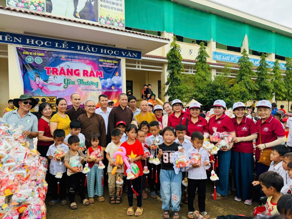 PSO - Trong không khí vui tươi của mùa lễ hội Trung Thu, Ban Từ thiện Xã hội GHPGVN tỉnh Đắk Lắk đã thực hiện chương trình trao tặng 3000 phần quà đến thiếu nhi tại chùa Viên Lâm, xã Xuân Phước và trường Tiểu học Cư Pui II, xã Cư Pui, tỉnh Đắk Lắk.