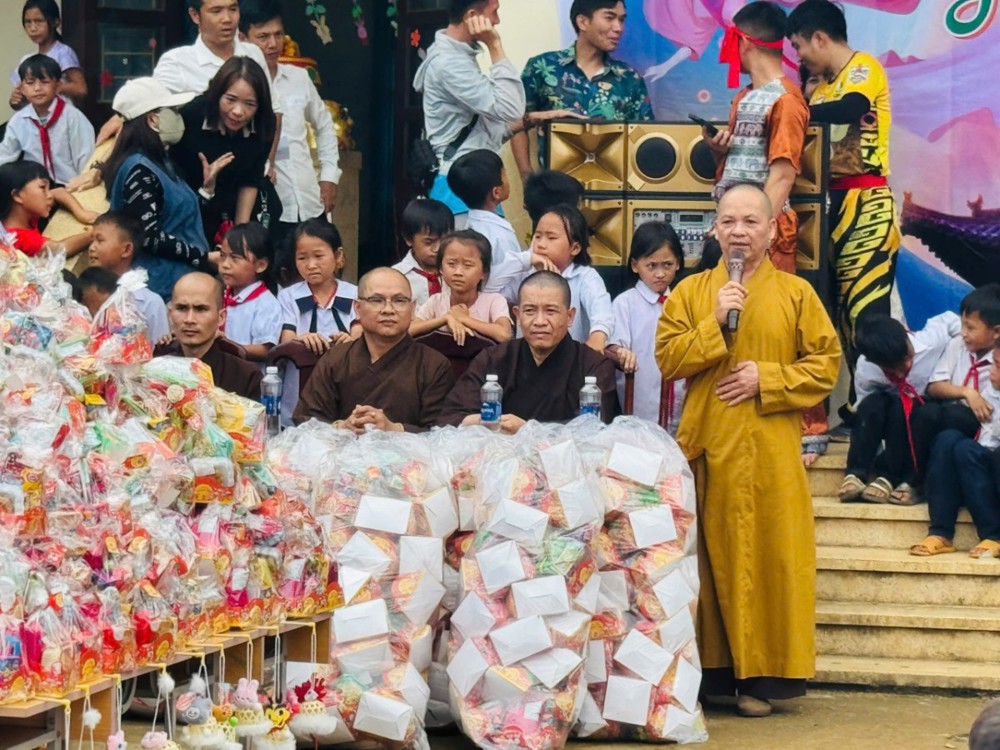 Trong phát biểu khai mạc, TT.Thích Trí Nghĩa – Trưởng ban tổ chức gửi lời chúc đến toàn thể bà con nhân dân Phật tử, đặc biệt là các em thiếu nhi một mùa Trung Thu tràn đầy tình thân. Thượng tọa gửi gắm thông điệp từ bi của đạo Phật đến mọi người, hi vọng rằng tình thương giữa cộng đồng ngày càng lan tỏa, như tinh thần tương thân tương ái của dân tộc ta. Đồng thời, Thượng tọa gửi lời tri ân sâu sắc đến các cơ quan, doanh nghiệp, các nhà hảo tâm đã đồng hành cùng hoạt động thiện nguyện hết sức ý nghĩa này.