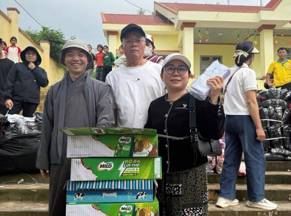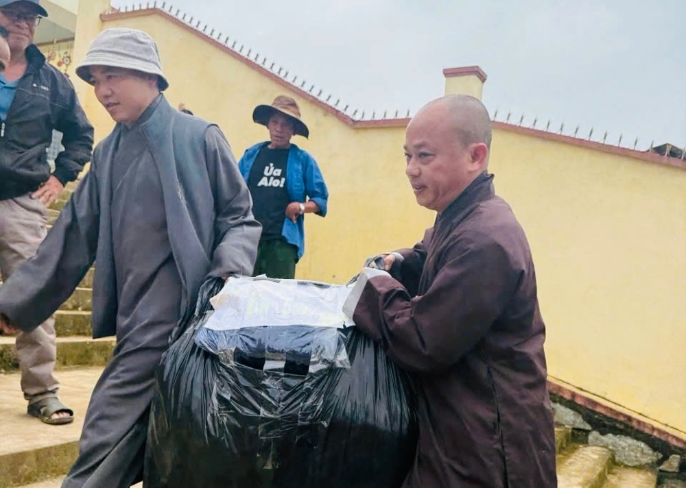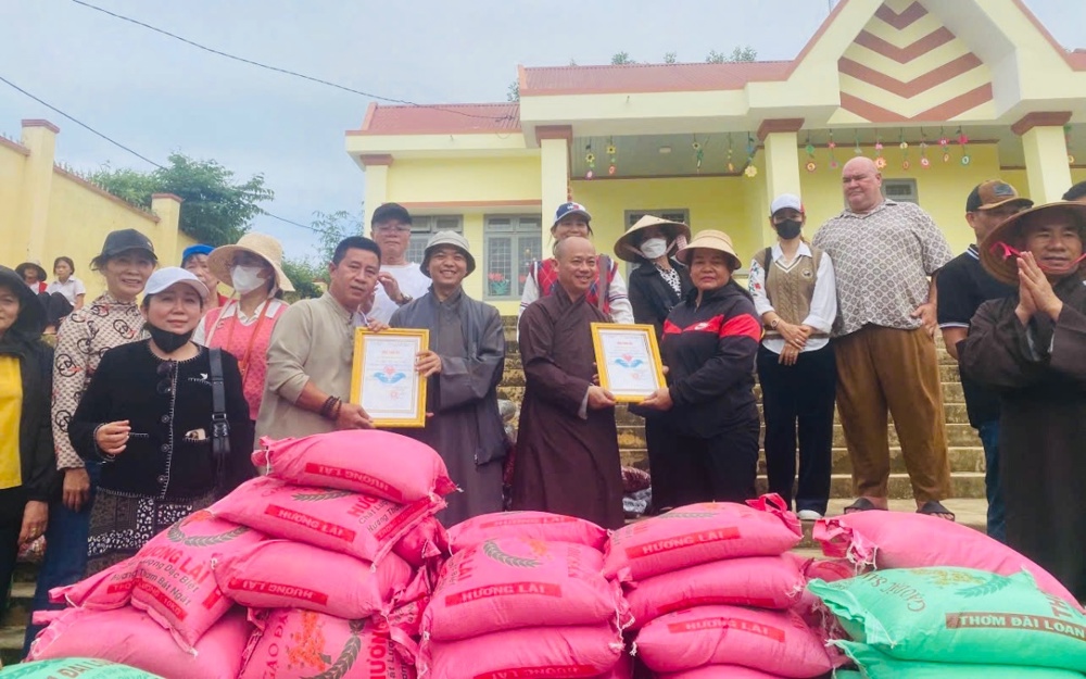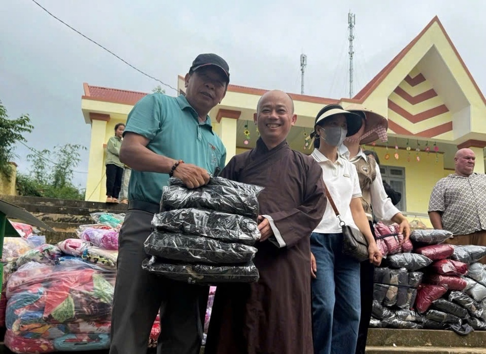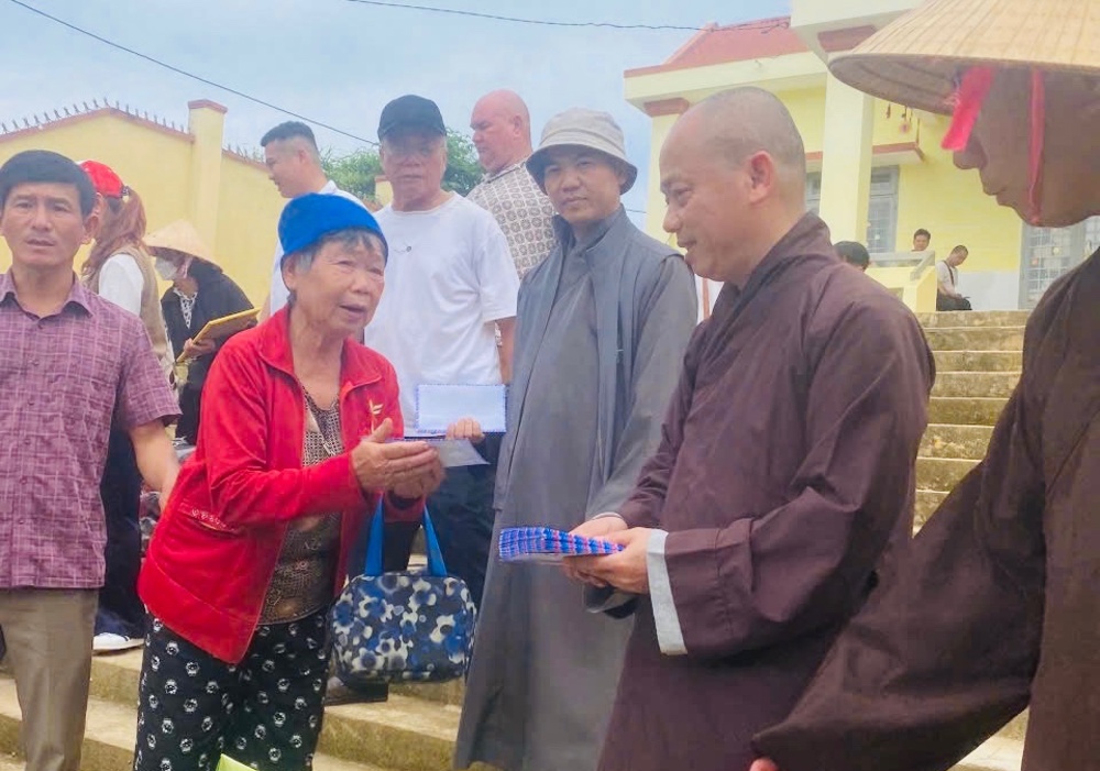 Trong chuyến từ thiện, đoàn đã trao 200 suất quà, gồm nhu yếu phẩm thiết yếu và tiền mặt nhằm hỗ trợ bà con sớm ổn định cuộc sống. Chư Tôn đức đã gửi lời thăm hỏi, động viên tinh thần, chia sẻ khó khăn với các gia đình bị thiệt hại do thiên tai.