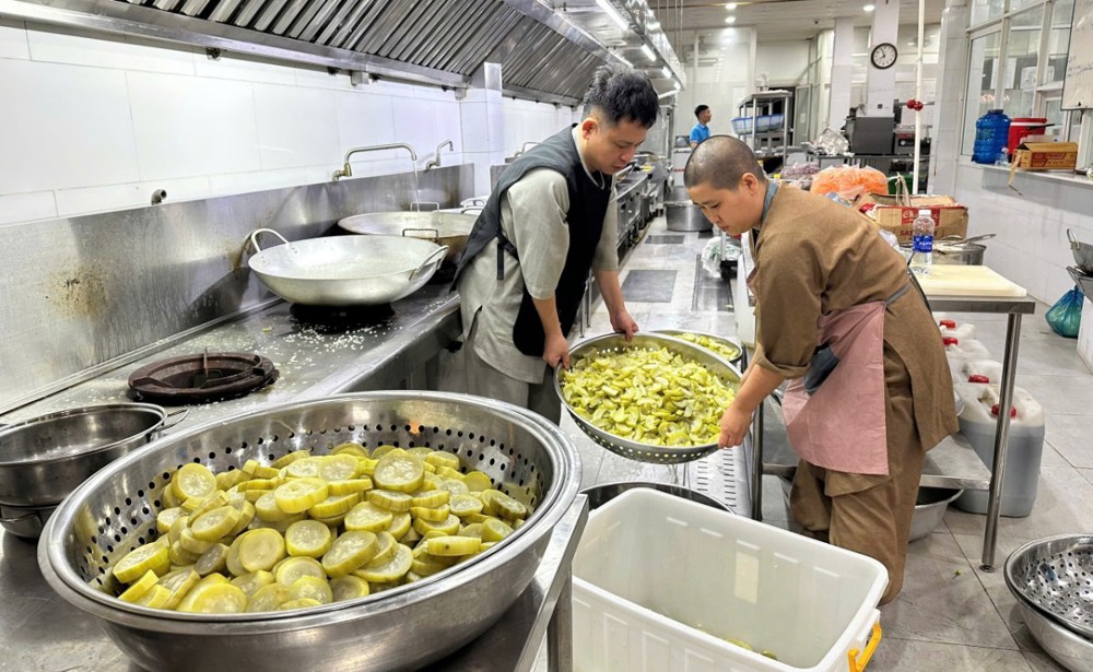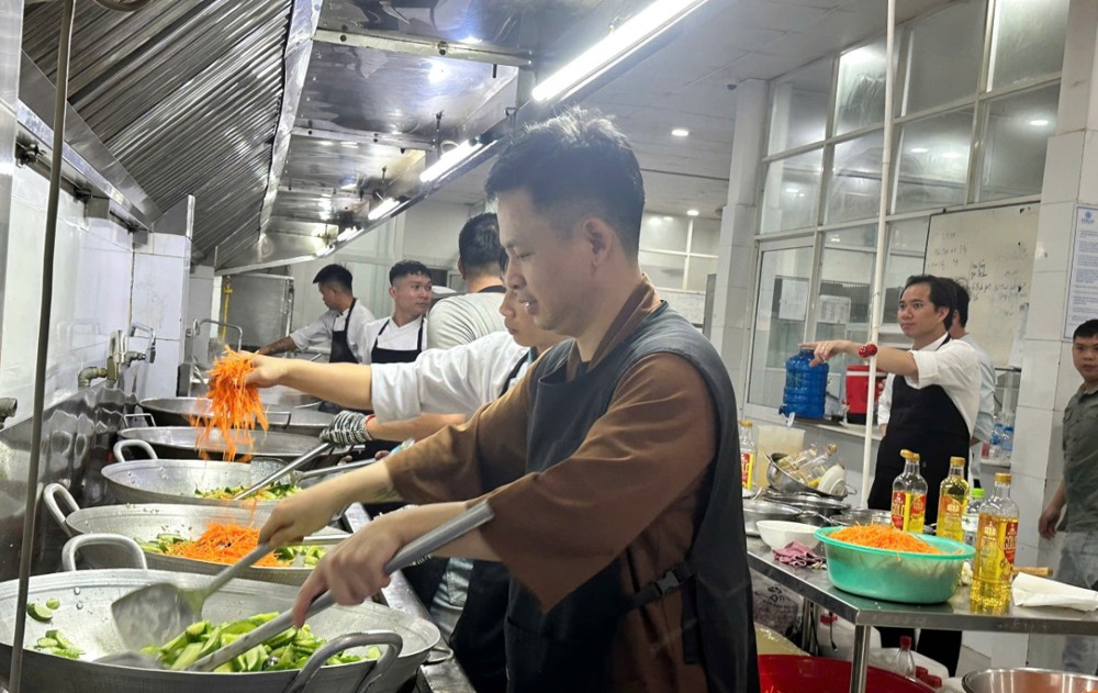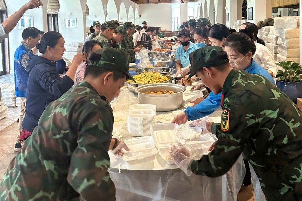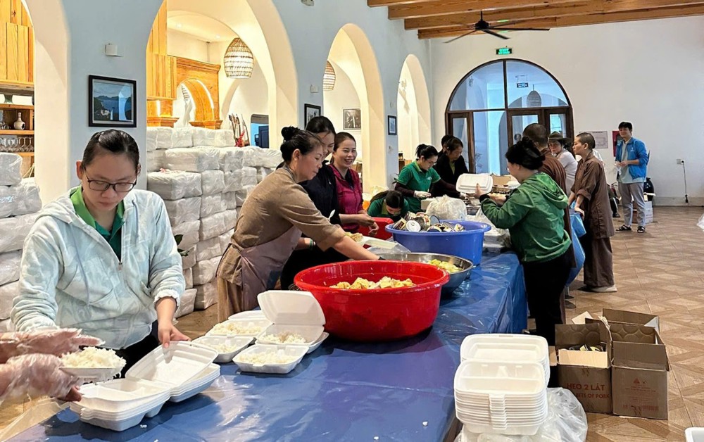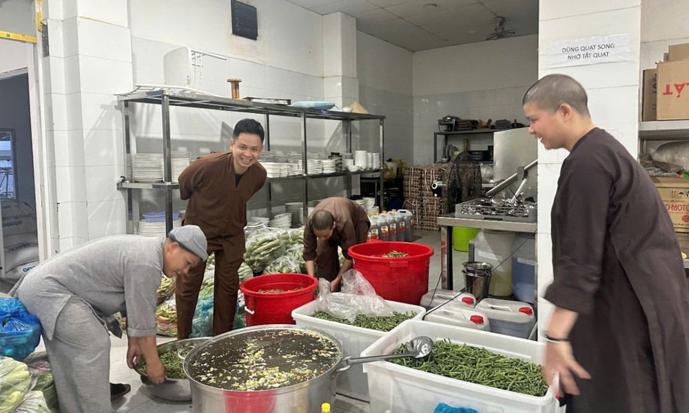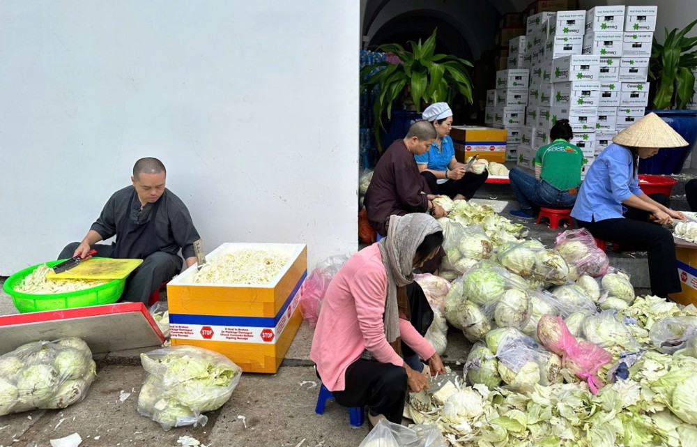 Tại điểm bếp ăn tập trung, quý Thầy, quý Sư cô và Phật tử đã cùng nhau chuẩn bị nguyên liệu, phân chia công việc, nấu hàng Vạn suất cơm nóng… Để kịp thời chuyển đến các khu vực bị ảnh hưởng nặng nề. Mỗi phần ăn không chỉ là nguồn năng lượng trong lúc hoạn nạn, mà còn chứa đựng tình thương, sự quan tâm và tấm lòng của Tăng Ni, Phật tử Thanh Hóa gửi tới đồng bào.