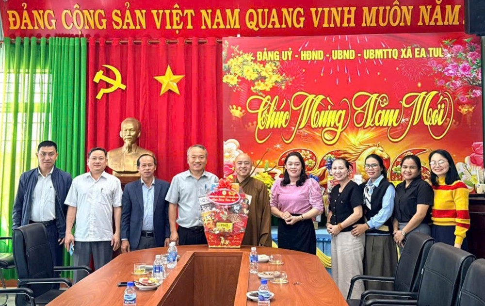 PSO - Chiều ngày 10/2/2026, trong không khí hân hoan trước thềm xuân mới, chùa Hoa Nghiêm, xã Quảng Phú đã đến thăm và chúc Tết Đảng ủy, HĐND, UBND, Ủy ban MTTQ Việt Nam xã Ea Tul nhân dịp Xuân Bính Ngọ 2026.