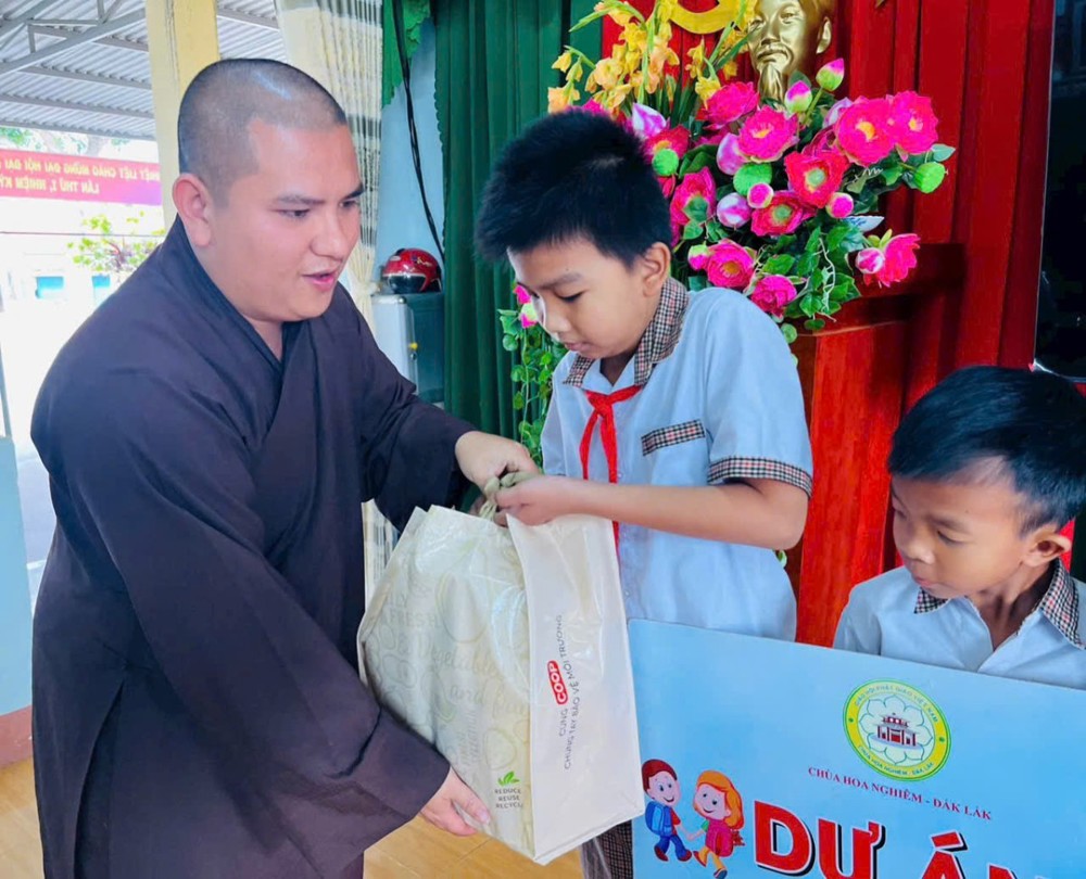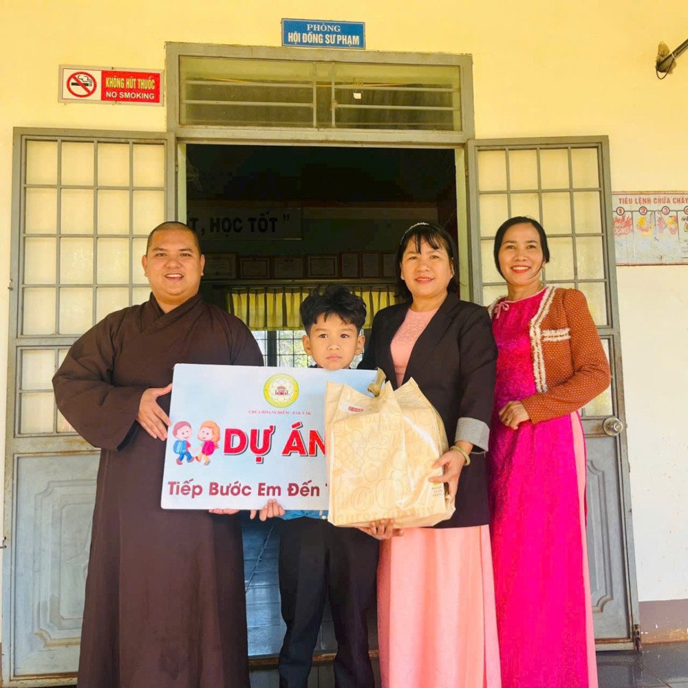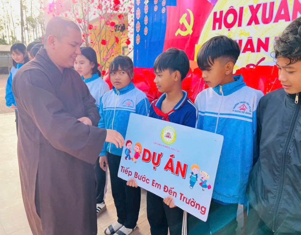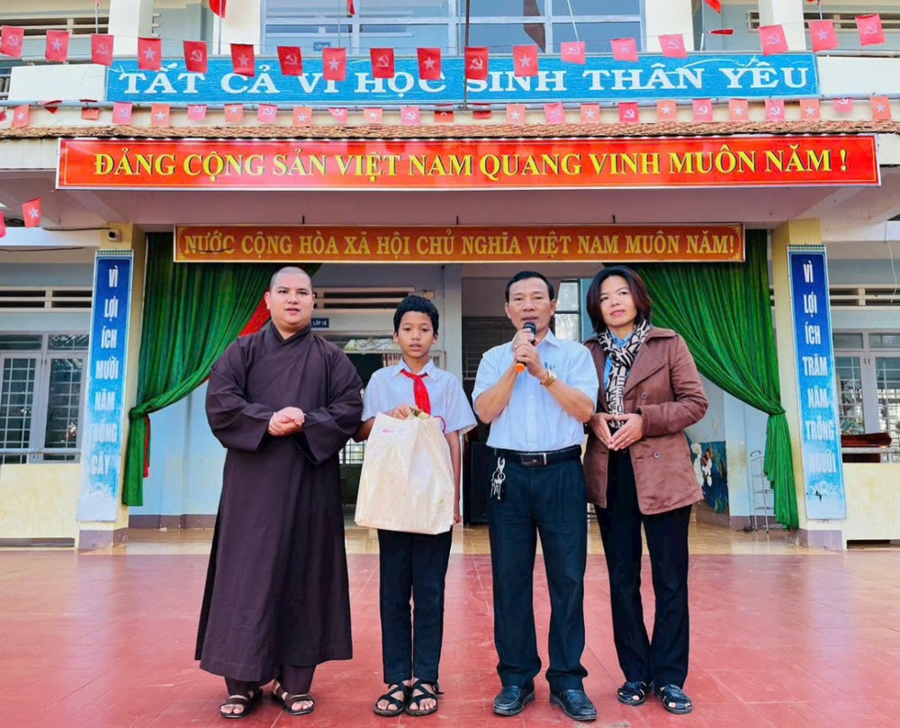 PSO - Sáng ngày 09/02/2026, Đại đức Thích Phước An cùng Tăng chúng chùa Hoa Nghiêm, thay mặt quý nhà hảo tâm gần xa, đã phối hợp cùng Ban Giám hiệu các trường: Tiểu học Trần Quốc Toản, Tiểu học Phạm Hồng Thái, Tiểu học Lê Thị Hồng Gấm, Tiểu học Lê Lợi, Tiểu học Nguyễn Trãi và THCS Y Ngông Niê Kđăm tổ chức chương trình thăm hỏi, trao học bổng đến các em học sinh có hoàn cảnh khó khăn trên địa bàn.