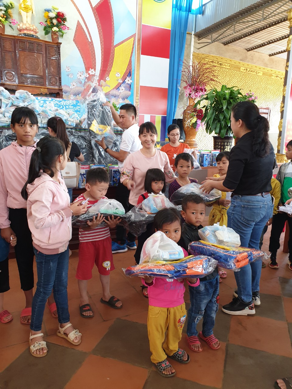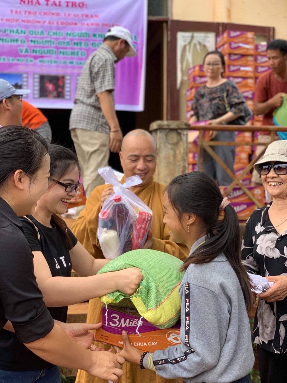 Nhân dịp này chúng tôi đại diện cho chùa Hoa Nghiêm, cũng như đại diện cho bà con nhận quà hôm nay gửi lời cảm ơn đến nhà Tài trợ chính; Le &Tran (Dong Phuong Tran); Ngân hàng Bản Việt BMT; Nhóm Oanh Đoàn BMT; Nhóm Phật tử chùa Hoa Nghiêm; cùng một số Mạnh Thường Quân đã cùng chung tay để chương trình thiện nguyện được tổ chức thành công tốt đẹp.Thay mặt cho các hoàn cảnh khó khăn, thay mặt các cháu thiếu nhi xin cảm ơn tất cả. Trân trọng tri ân sâu sắc.