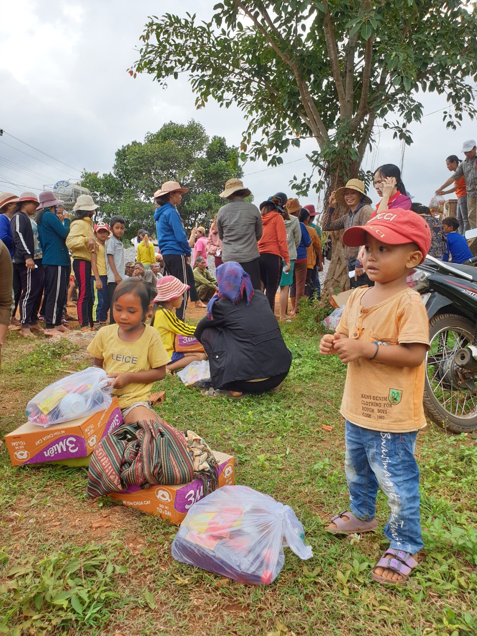 ĐĐ Trụ trì phát biểu tại buổi Lễ trao quà: " Bà con quanh làng mình còn rất nhiều khó khăn, quanh năm lao động nhưng không đủ cơm ngày 3 bữa, người khuyết tật đói nghèo, trẻ em mồ côi lang thang, các cụ già neo đơn thương tâm, nhìn thấy cảnh tượng như vậy ai mà không xót, trái tim nào không quặn thắt, chúng tôi cũng như Mạnh Thường Quân, nhà hảo tâm, quý Phật tử xa gần, đóng góp kẻ công người của, cố gắng chia ngọt sẻ bùi với bà con, giúp được phần nào trong cuộc sống, còn lại quý vị cố gắng vươn lên để thoát nghèo, hết khổ, có như vậy làng chúng ta mới có được bình yên, các em nhỏ được đến trường, có được kiến thức nuôi lớn ước mơ, sau này là nhân tài của đất nước".