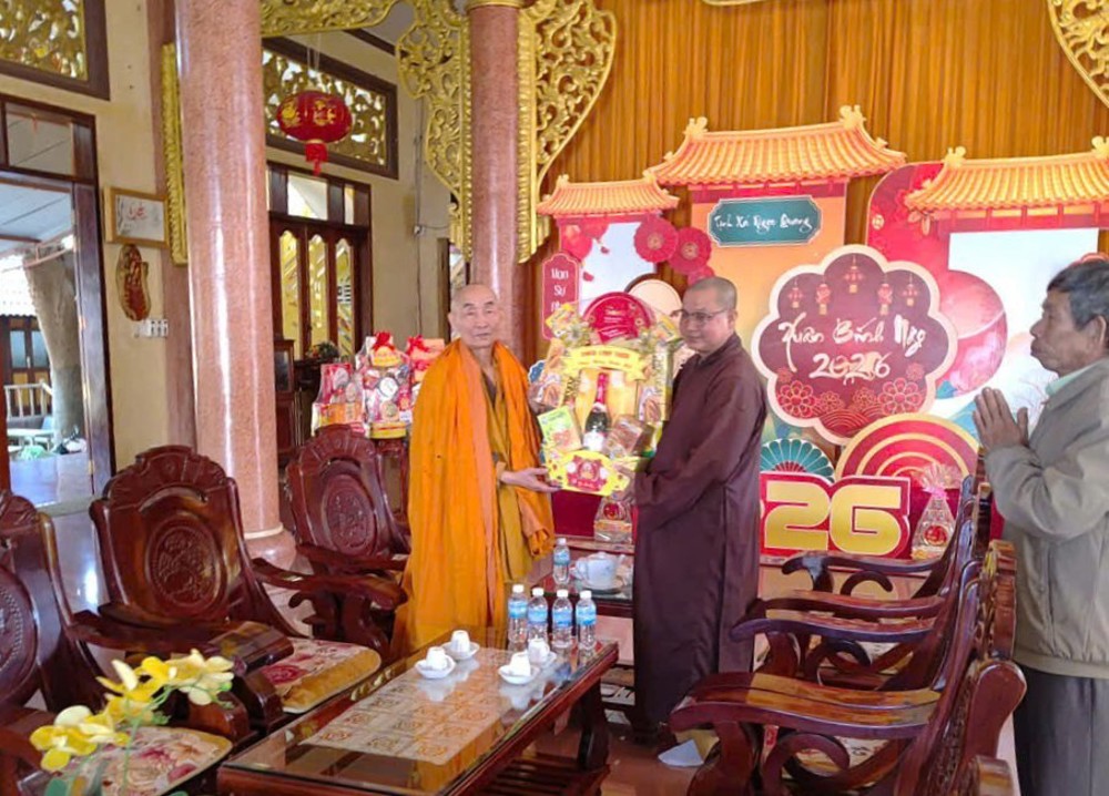 PSO - Ngày 23 tháng Chạp năm Ất Tỵ (nhằm ngày 10/02/2026), trong không khí hoan hỷ trước thềm xuân mới, Thượng tọa Thích Nguyên Hạnh, Trụ trì chùa Linh Thứu (phường Cư Bao, tỉnh Đắk Lắk), cùng Ban Hộ tự và Bác Gia trưởng Gia đình Phật tử chùa Linh Thứu đã trang nghiêm tổ chức chuyến đảnh lễ khánh tuế chư Tôn Trưởng lão Hòa thượng Chứng minh Ban Trị sự GHPGVN tỉnh Đắk Lắk, đồng thời đến thăm và chúc Tết các cơ quan, ban ngành trên địa bàn.