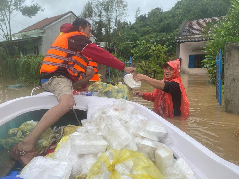 Đoàn đã phối hợp với các lực lượng chức năng tại địa phương vận chuyển lương thực vào cứu trợ bà con đang bị nước lũ cô lập. Trong quá trình vận chuyển hỗ trợ lương thực, đoàn cũng đã đưa được 2 người dân từ vùng lũ nguy hiểm ra đến nơi an toàn.