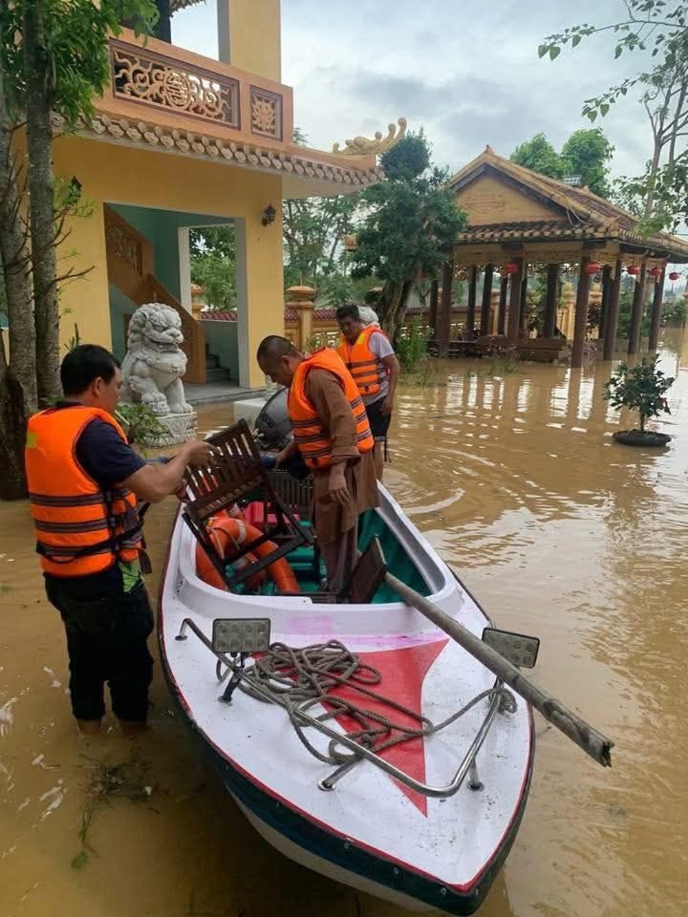 Chùa Phước Thiện (xã Hòa Tiến, Tp Đà Nẵng) là một ngôi chùa nằm trong khu vực bị ảnh hưởng nặng trong đợt lũ cuối tháng 10 năm 2025. Trước cảnh nước lũ bao vây chùa và bà con trong khu vực, gây ra nhiều khó khăn trong đời sống và sinh hoạt hằng ngày cũng như những trường hợp nguy cấp bởi nước lũ, Phật tử Tôn Thất Linh Hùng đã xin ý kiến của Đại đức Thích Thông Diệu – Trú trì chùa Phước Thiện vận động thân hữu và những tấm lòng hảo tâm mua chiếc ca nô để sử dụng cứu hộ bà con khi nước lũ.