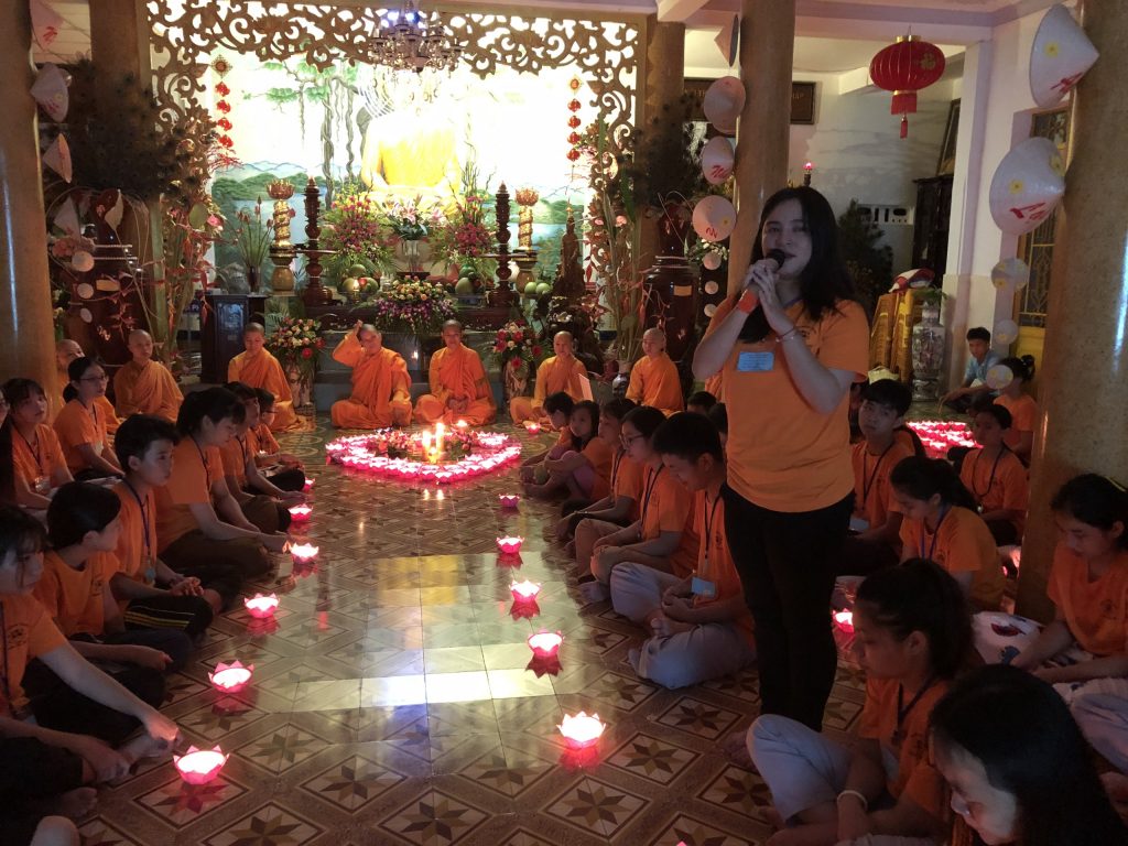 Dưới ánh từ quang của Đức Phật, các bạn khóa sinh có được sự yên bình và cảm nhận được sự hạnh phúc vô biên khi được trải nghiệm, có được kiến thức và chiều sâu về thuật ngữ Phật pháp, cũng như cách ứng xử với mọi người, có được hành trang cho bản thân, kiến tạo mô hình và định hướng tương lai thật tốt, đó là kỹ năng sống mà mỗi khóa sinh có được trong mùa hè năm nay khi đăng ký tham gia các khóa tu. Thời gian ở bên nhau đã hết, cuộc vui nào rồi cũng tàn, hạnh phúc nào rồi cũng tan, xin cất giữ lại làm kỷ niệm đẹp trong mùa hè khi ở bên nhau, đêm nay, là đêm cuối cùng, sau khi thắp nến tri ân Cha Mẹ và sưởi ấm trái tim hiếu thảo của mình, khi nhận ra được giá trị cuộc sống và trách nhiệm bản thân, thì khoá tu tạm khép lại bên những ngọn nến hồng lấp lánh, những ngọn nến tượng trưng cho tình yêu thương, lòng tri ân của các bạn khóa sinh đối với BTC, cũng nhưng với hai đấng sinh thành.