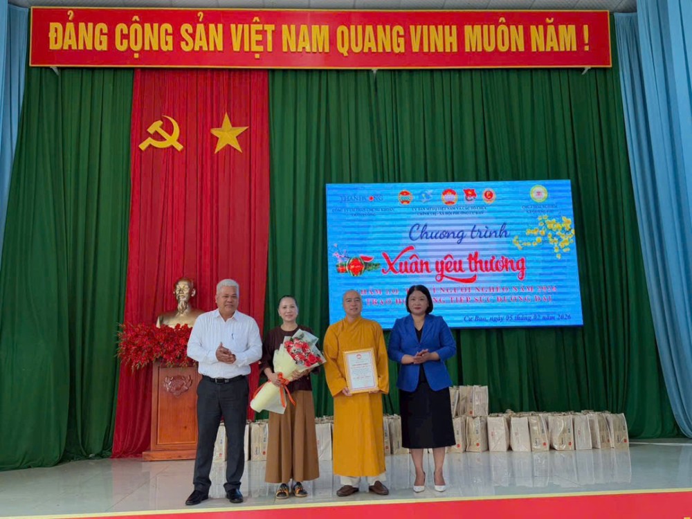 Dịp này, lãnh đạo phường Cư Bao đã trao thư cảm ơn chùa Hoa Nghiêm vì những đóng góp tích cực, hỗ trợ chương trình “Tết vì người nghèo” Xuân Bính Ngọ 2026.