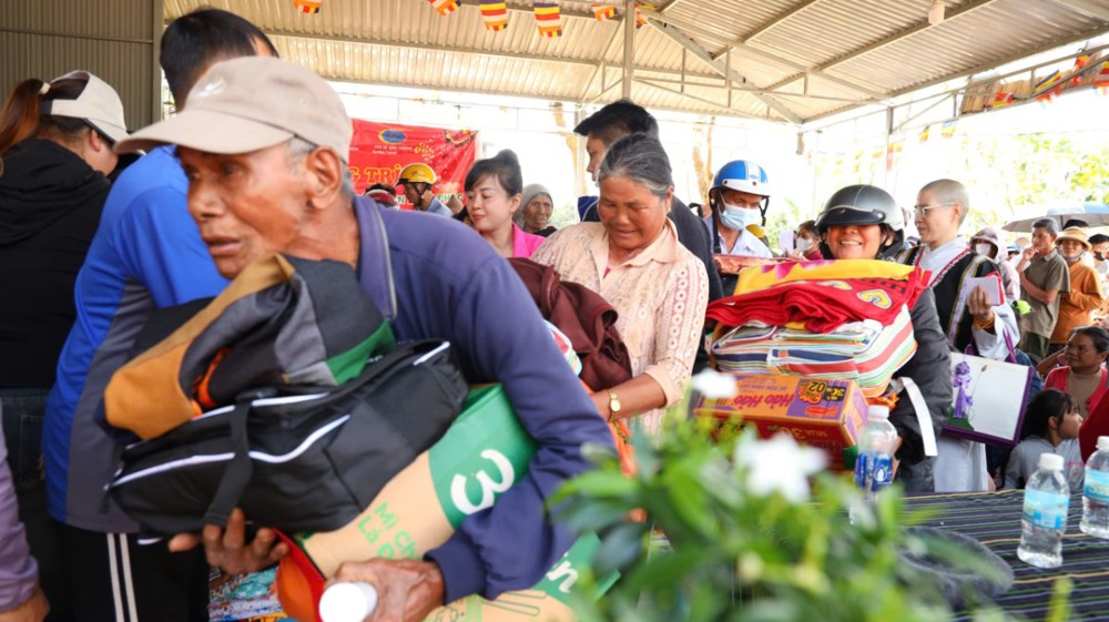 Chương trình trao quà khép lại trong niềm hoan hỷ của Tăng Ni, Phật tử và bà con địa phương. Trên tay mỗi hộ dân là những phần quà thiết thực gồm ba lô, quần áo ấm, gạo, mì và bao lì xì nhỏ đầu năm, như gói trọn tình thương và sự quan tâm chân thành mà Tăng Ni, Phật tử gửi gắm đến đồng bào vùng cao. Tổng trị giá chương trình hơn 100 triệu đồng.