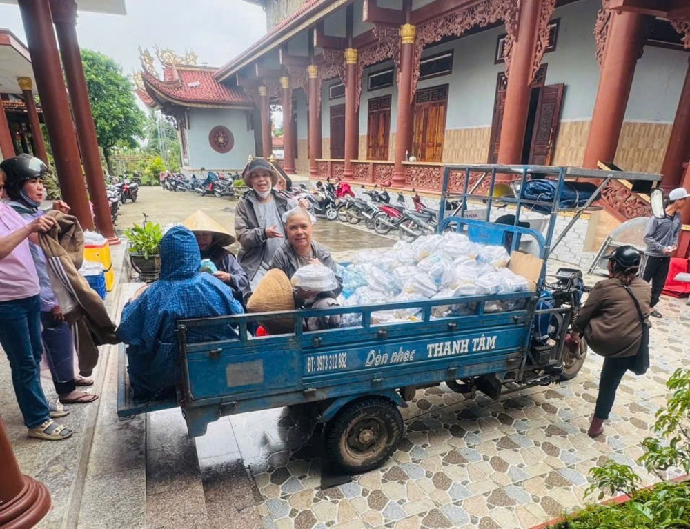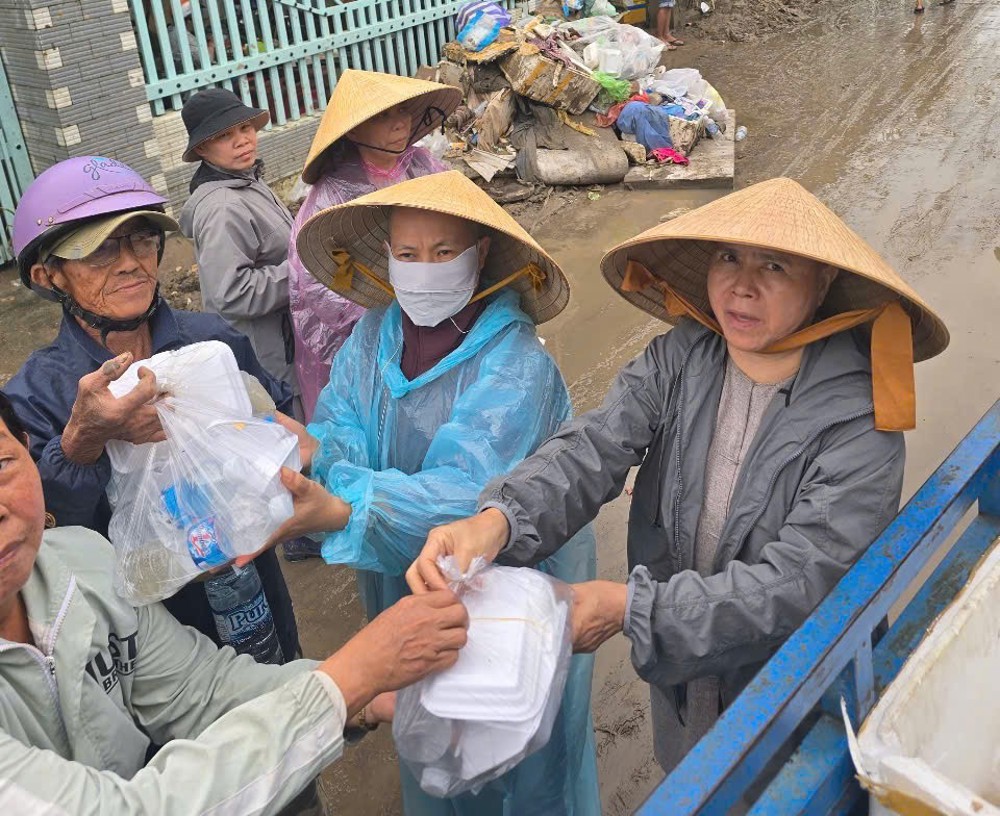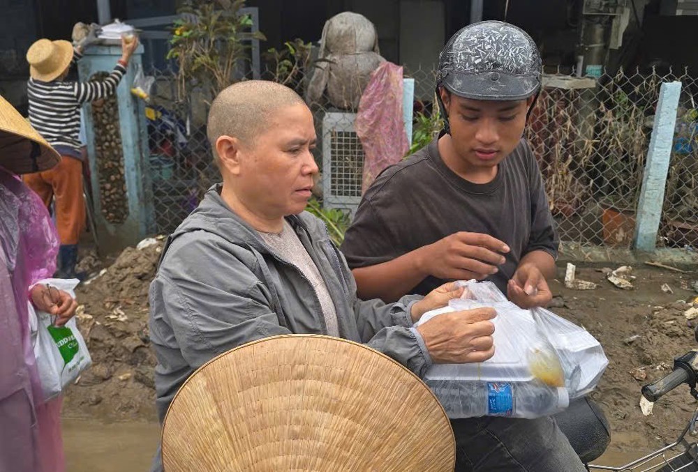 Ni sư Tâm Phương chia sẻ: “Trong lúc hoạn nạn, một bữa cơm nóng cũng đủ làm ấm lòng. Chúng tôi nguyện không để ai bị bỏ lại trong mùa lũ này.”