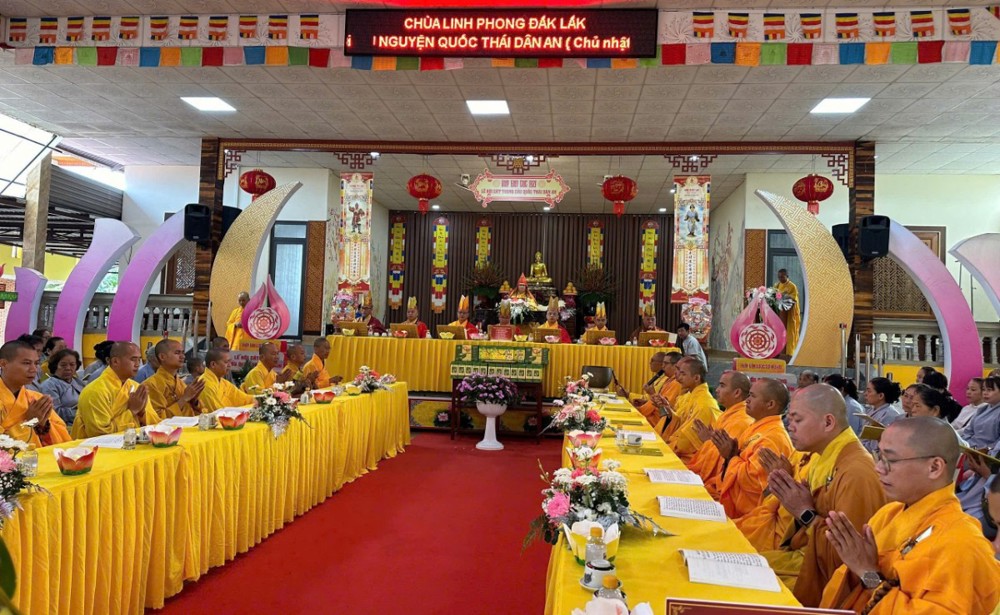 Quang lâm chứng minh và tham dự buổi lễ có: Hòa thượng Thích Châu Quang – Ủy viên Hội đồng Trị sự, Chứng minh Ban Trị sự GHPGVN tỉnh Đắk Lắk, Viện chủ Tổ đình Sắc Tứ Khải Đoan, cùng chư Tôn đức Tăng Ni các tự viện trên địa bàn, đông đảo Phật tử, thiện nam tín nữ và nhân dân địa phương.