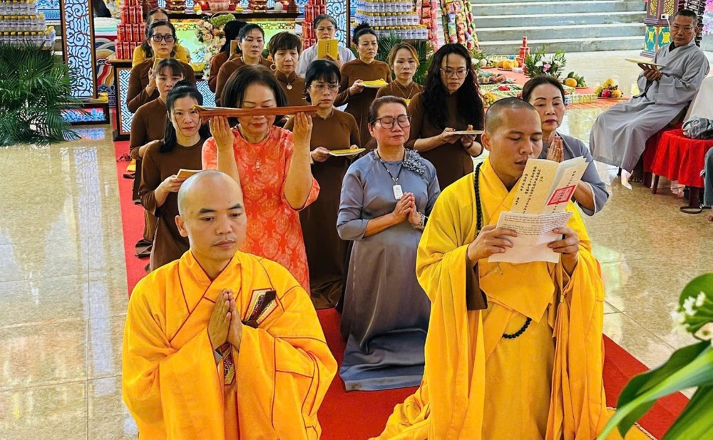 Trong không khí trang nghiêm, thanh tịnh nơi cửa thiền, đại chúng đồng tụng Kinh Dược Sư, xưng tán hồng danh Đức Dược Sư Lưu Ly Quang Như Lai, dâng hương bạch Phật, nhất tâm cầu nguyện cho đất nước thái bình, xã hội an vui, chúng sinh tiêu tai giải nạn, thân tâm thường an lạc.