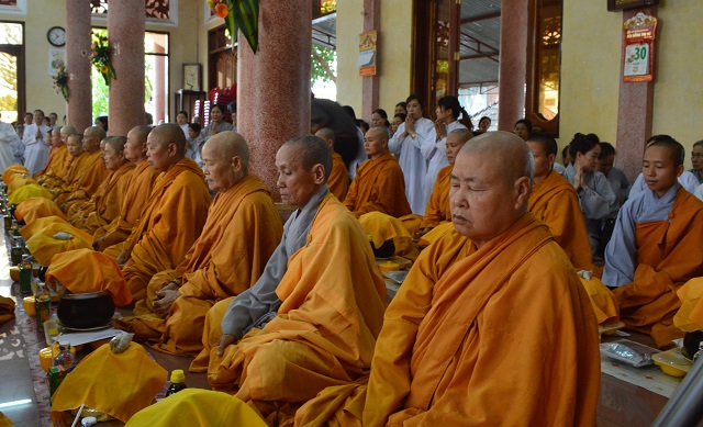 Ngay sau khi đi khất thực trở về, chư Tôn đức Giáo đoàn III đã có buổi họp tăng để giải quyết các vấn đề sắp đến như khóa bồi dưỡng Trụ trì, mùa An cư, rằm tháng 7, đề xuất các vị được lên lớp Sa di, Tỳ kheo….Tiếp đó, vào lúc 10h30, Phật tử đã cúng dường trai tăng lên chư Tôn đức Giáo đoàn III tại tịnh xá Ngọc Quang.