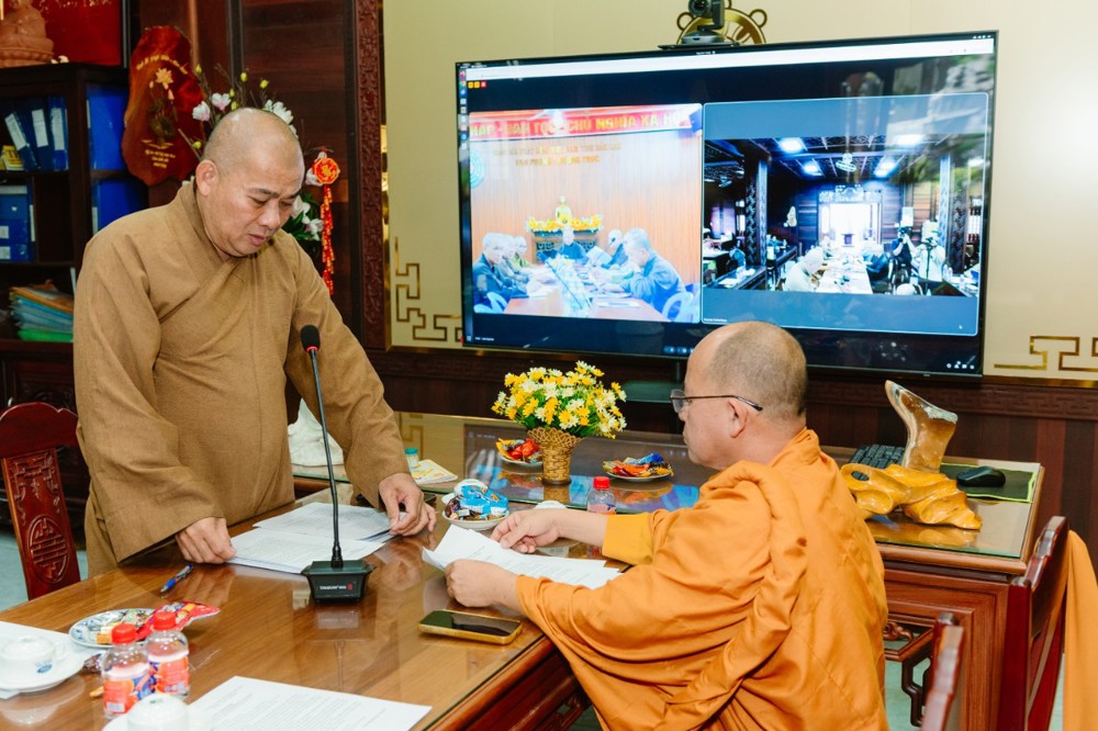 Cũng tại phiên họp, chư Tôn đức đã thông tin về công tác hành chính đạo, công đức phí, công tác tiếp nhận ủng hộ bão lũ lụt từ Trung ương Giáo hội cũng như những tấm lòng thiện nguyện đến từ khắp cả nước…