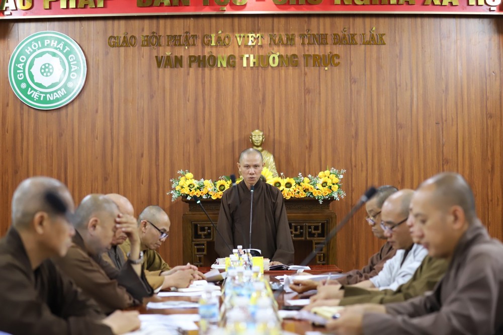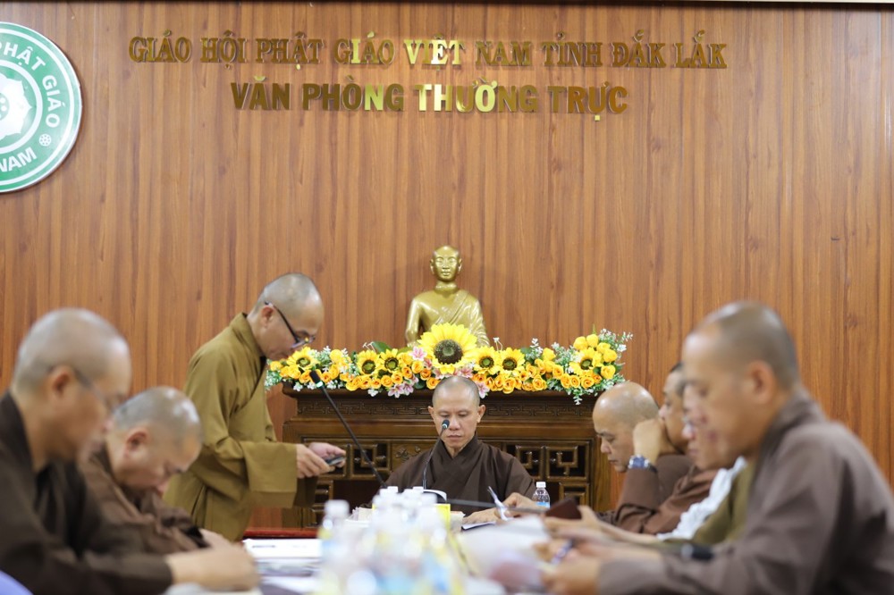 Chủ tọa phiên họp có Đại đức Thích Nguyên Minh, Uỷ viên HĐTS, Trưởng BTS GHPGVN tỉnh Đắk Lắk; Thượng tọa Thích Giác Phổ, Phó Trưởng ban Thường trực BTS GHPGVN tỉnh. Phiên họp có sự tham dự của Đại đức Thích Chúc Phát, Phó ban kiêm Chánh Thư ký BTS; Thượng tọa Thích Trí Nghĩa, Phó BTS kiêm Trưởng ban Từ thiện xã hội; Ni trưởng Thích Nữ Chúc Tâm, Phó ban kiêm Trưởng phân ban Ni giới tỉnh; chư Tôn đức Uỷ viên Thường trực BTS GHPGVN tỉnh.