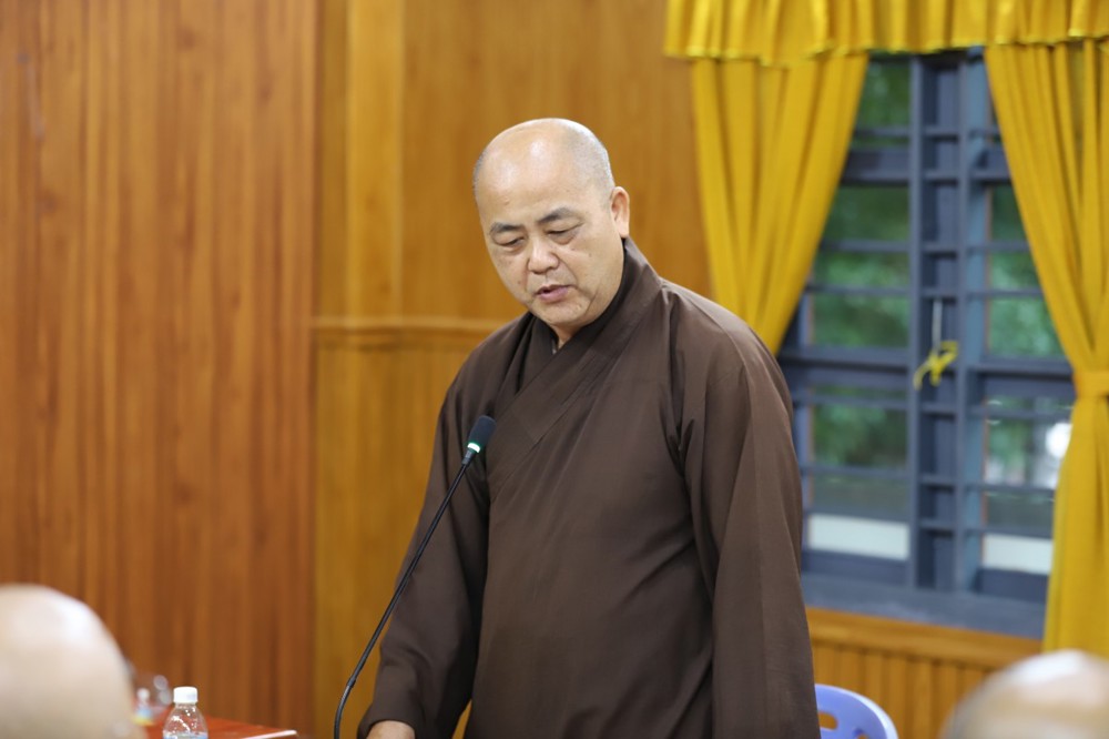 Đại đức Thích Chúc Phát, Phó ban kiêm Chánh Thư ký BTS báo cáo tình hình thiệt hại do bão số 13 và lũ lụt tại miền đông Đắk Lắk là vô cùng nghiêm trọng cả về tài sản và tính mạng nhân dân. Theo đó, các cơ sở tự viện trên địa bàn cũng bị tàn phá nặng nề, để lại hệ lụy lâu dài.