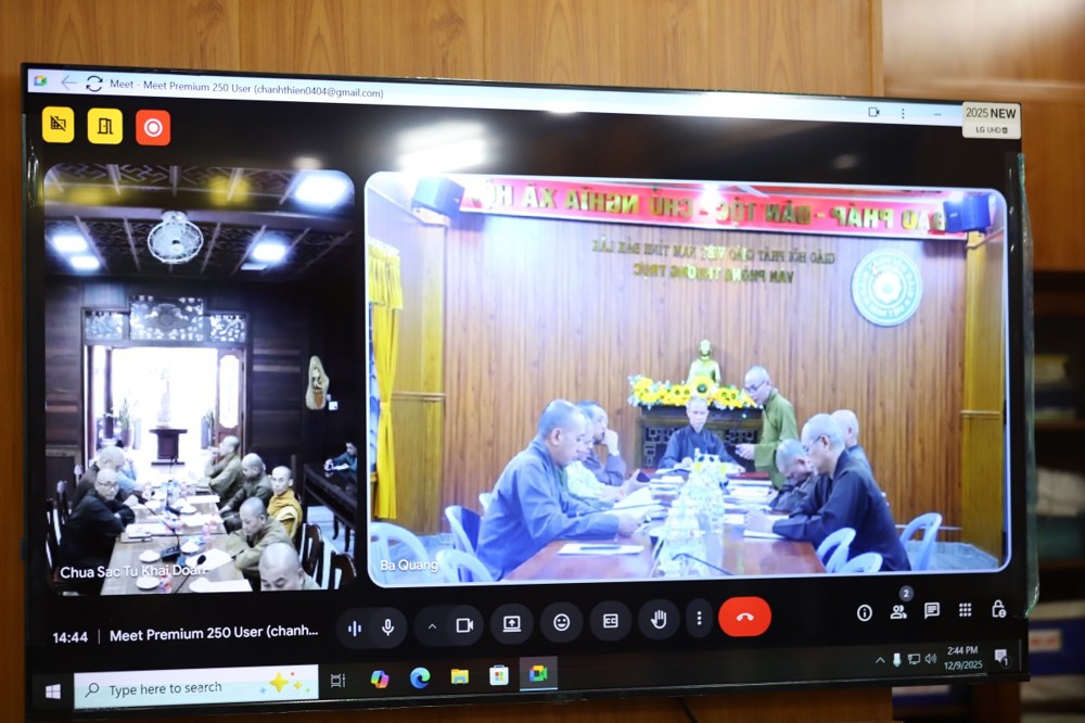 PSO - Chiều 9/12/2025 (nhằm ngày 20/10 Ất Tỵ), tại trụ sở GHPGVN tỉnh Đắk Lắk – Chùa Sắc tứ Khải Đoan, P.Buôn Ma Thuột và Văn phòng Thường trực Ban Trị sự Phật giáo Đắk Lắk - Chùa Bảo Tịnh, phường Tuy Hòa, Thường trực BTS PG tỉnh đã tổ chức phiên họp trực tuyến bất thường về việc tổ chức đại lễ cầu siêu các nạn nhân tử vong do bão số 13 và triển khai các hoạt động Phật sự quan trọng cuối năm.