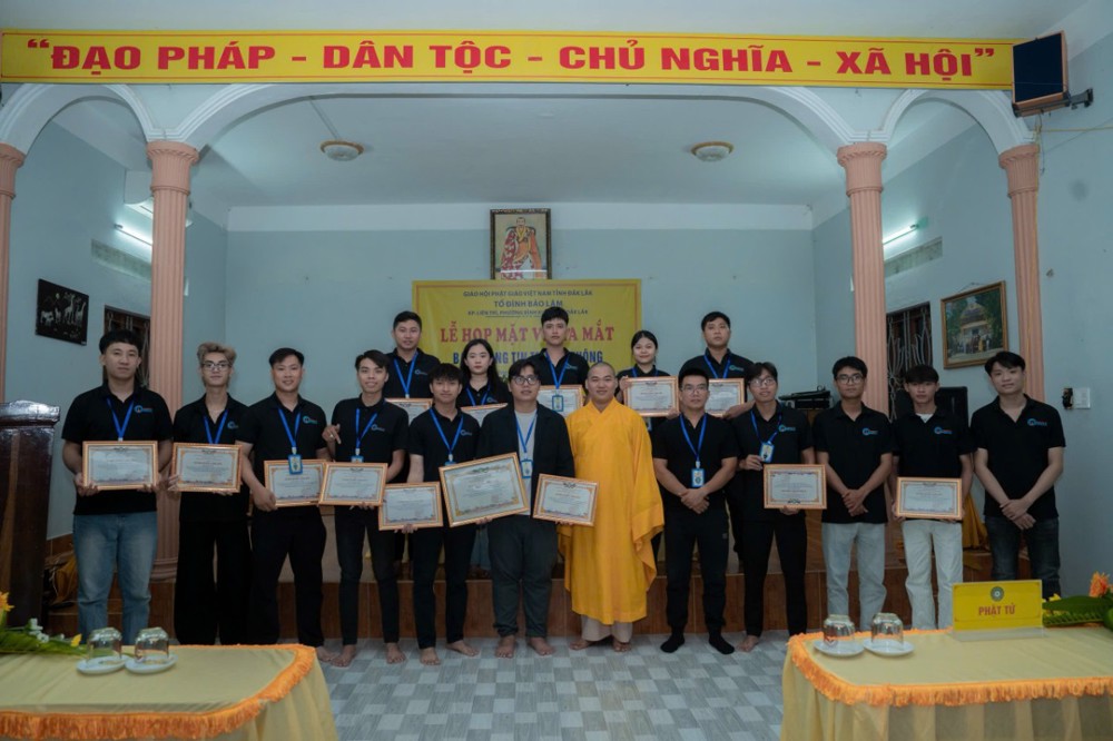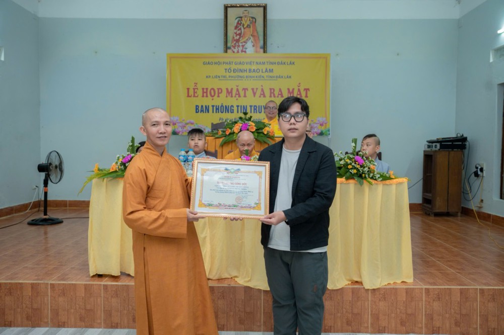Nhằm ghi nhận và tán dương công đức của tập thể, cá nhân đã có nhiều đóng góp cho công tác truyền thông của chùa trong thời gian qua, ĐĐ. Thích Quảng Bá, trụ trì Tổ đình Bảo Lâm, đã trao Bằng tuyên dương công đức đến các thành viên Ban Truyền thông.