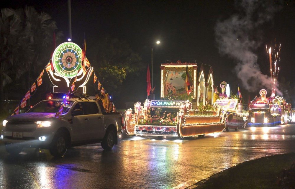PSO - Nằm trong chương trình Đại lễ Phật đản Vesak PL.2569, tối ngày 15/4/Ất Tỵ (nhằm ngày 12/5/2025), Ban Trị sự Phật giáo tỉnh Đắk Nông trang nghiêm tổ chức diễu hành xe hoa cúng dường kỷ niệm ngày Khánh đản của Đức Thế tôn do các chùa, tự viện, tịnh xá trong toàn tỉnh thiết trí những chiếc xe hoa rực rỡ diễu hành trên các tuyến đường thuộc thành phố Gia Nghĩa, đây là sự kiện văn hóa đặc sắc, được Tăng Ni, Phật tử tỉnh nhà chuẩn bị vô cùng chu đáo.