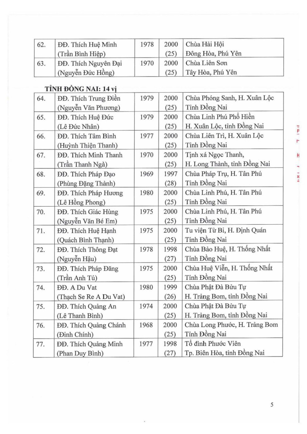Danh sach tấn phong giáo phẩm Hòa thượng