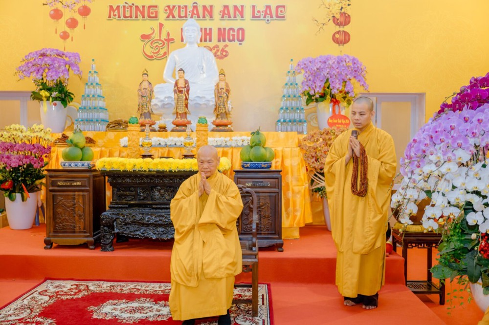 Trong không khí ấm áp trước thềm năm mới Xuân Bính Ngọ 2026, Trưởng lão Hòa thượng hoan hỷ tán dương tinh thần tinh tấn tu học, hộ trì và phụng sự Tam bảo của toàn thể đại chúng; đồng thời sách tấn Phật tử tiếp tục vun bồi giới – định – tuệ, giữ vững chí nguyện Bồ-đề, lấy chánh pháp làm kim chỉ nam trong đời sống tu tập. Ngài chúc toàn thể đại chúng Bồ-đề tâm kiên cố, trí tuệ học vững bền, mãi là Bồ-đề quyến thuộc, đồng tu, đồng hành trên con đường giác ngộ và giải thoát.