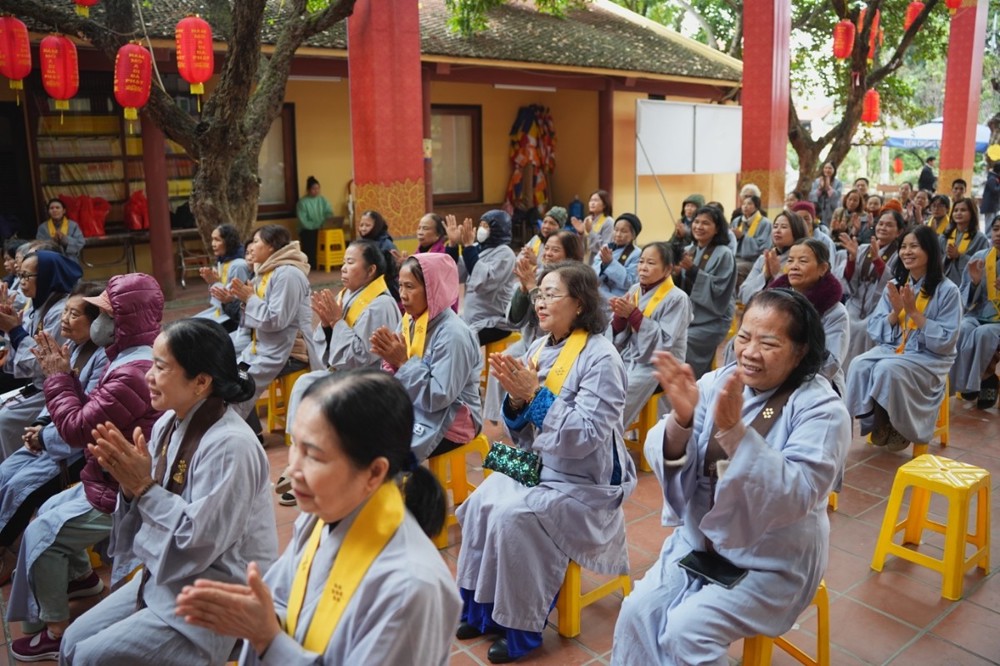 Trên tinh thần “thường hành Bồ Tát đạo, không rời đời ngũ trược”, trong năm 2025, Đạo tràng Pháp Hoa chùa Đại Thành đã duy trì sinh hoạt tu học đều đặn, lấy Pháp Hoa làm kim chỉ nam cho đời sống tu hành và phụng sự. Nổi bật trong bài phát biểu tổng kết hoạt động tu học năm 2025 do Phật tử Hoa Tâm Ngọc - Chúng trưởng Đạo tràng Pháp Hoa chùa Đại Thành báo cáo, năm 2025 đã kết nạp thêm 262 đạo hữu. Đạo tràng hiện có 682 hội viên chính thức và 166 đạo hữu kết duyên tu tập, có 2 đạo hữu thọ Y nâu và 117 đạo hữu đủ điều kiện mang Y mở. 19 chúng trực thuộc Đạo tràng được phân bố rộng khắp, mỗi chúng có 1 Chúng trưởng và 2-3 Chúng phó. Hình thức tu tập linh hoạt như học online, tu tại gia, sinh hoạt chúng và tu tập trung tại chùa Đại Thành, các chùa làng để đáp ứng nhu cầu của các Phật tử. Toàn Đạo tràng có 17 Phật tử đang theo học các lớp Hoằng pháp do Ban Hoằng pháp TW GHPGVN tổ chức, 12 vị tham gia lớp Trung cấp Phật học dành cho cư sĩ.