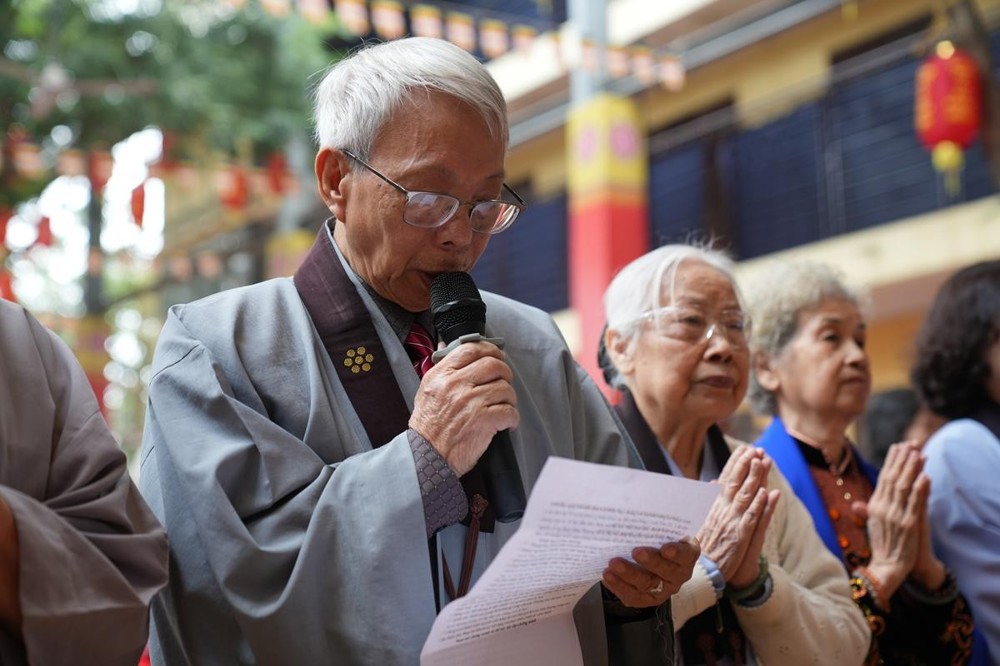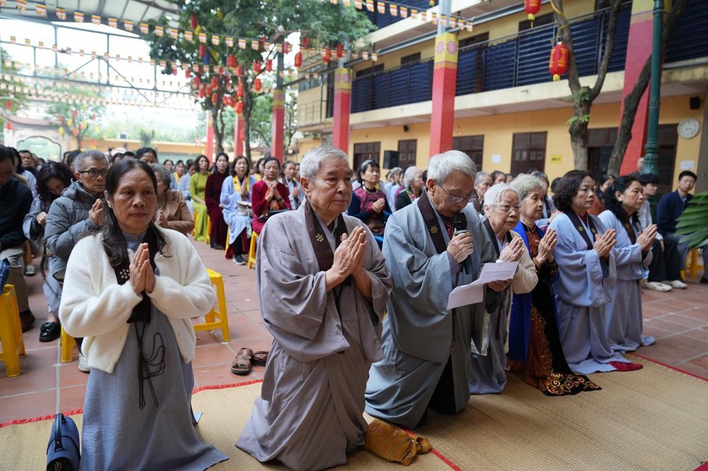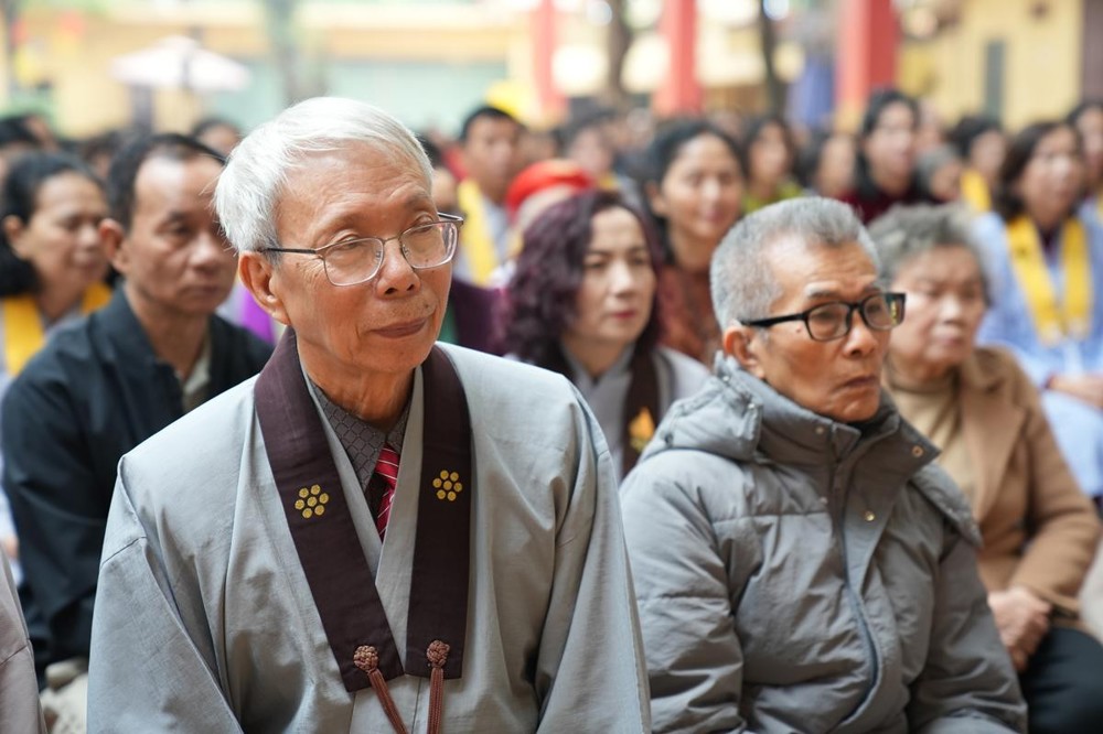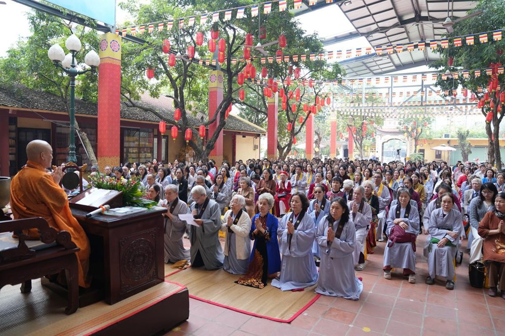 Sau đó, đại diện cho Đạo tràng Pháp Hoa đã chắp tay búp sen trang nghiêm, dâng lời tác bạch khánh tuế, kính chúc Hòa thượng Thích Bảo Nghiêm - Bậc ân sư của Đạo tràng Pháp Hoa miền Bắc pháp thể khinh an, đạo thọ miên trường, tiếp tục là ngọn đèn tuệ giác soi sáng cho hàng hậu học. Sau lời tác bạch đầu xuân, đại chúng nhất tâm cung kính đón nghe thời pháp thoại của Hòa thượng – những lời sách tấn nhẹ nhàng mà sâu sắc, mở ra một khởi đầu an lành cho hành trình tu học trong năm mới.