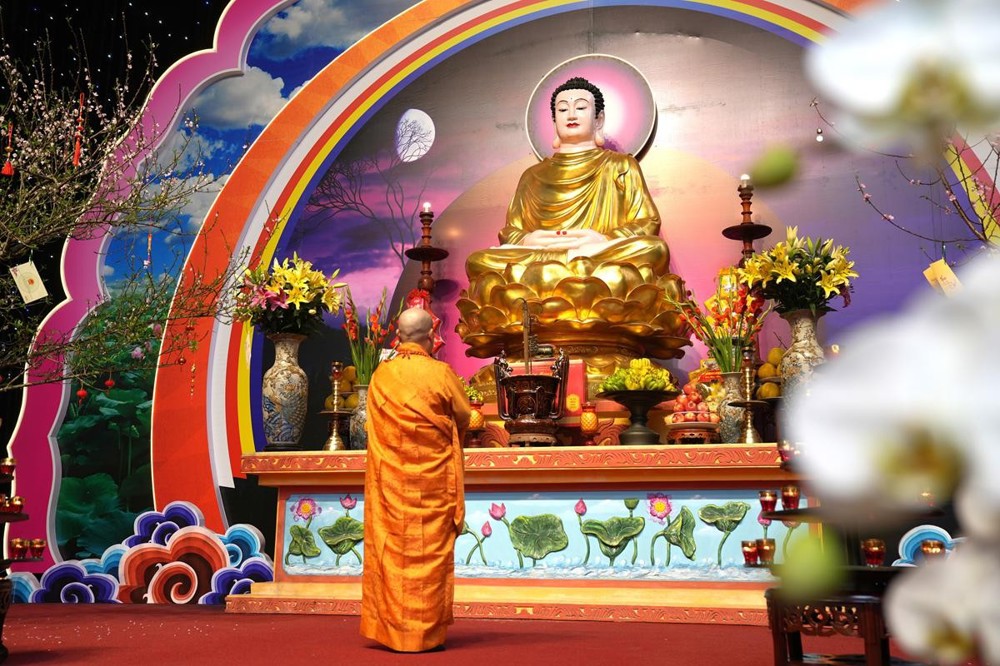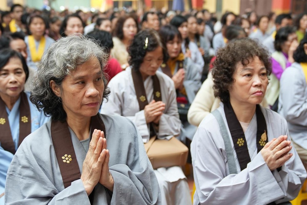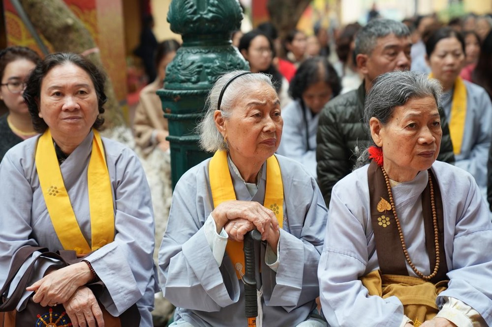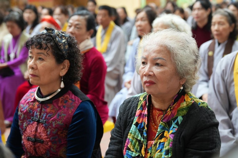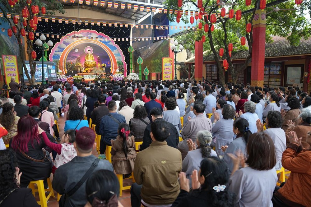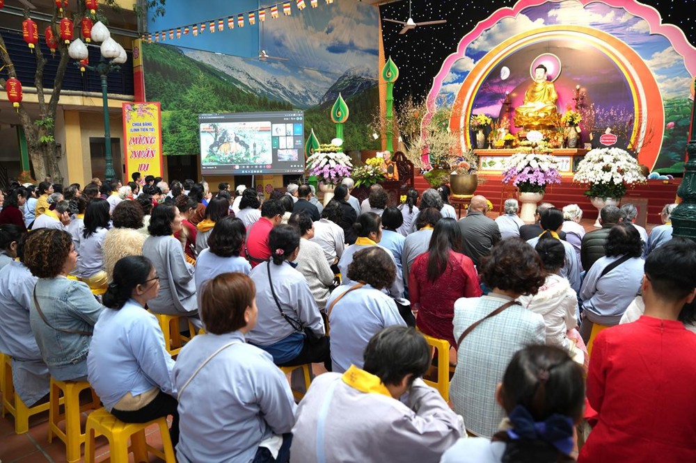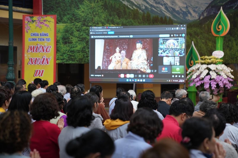 Trước khi đón nghe thời pháp thoại đầu xuân của Hòa thượng Thích Bảo Nghiêm, đại chúng đã thành kính lắng nghe thời pháp ngắn qua youtube của Đại lão Hòa thượng Đệ tứ Pháp chủ GHPGVN – bậc Tôn sư khả kính của Đạo tràng Pháp Hoa. Những lời pháp trầm tĩnh, từ hòa vang lên trong buổi đầu năm như dòng suối mát, tưới tẩm hạt giống niềm tin và đạo tâm nơi mỗi người con Phật.