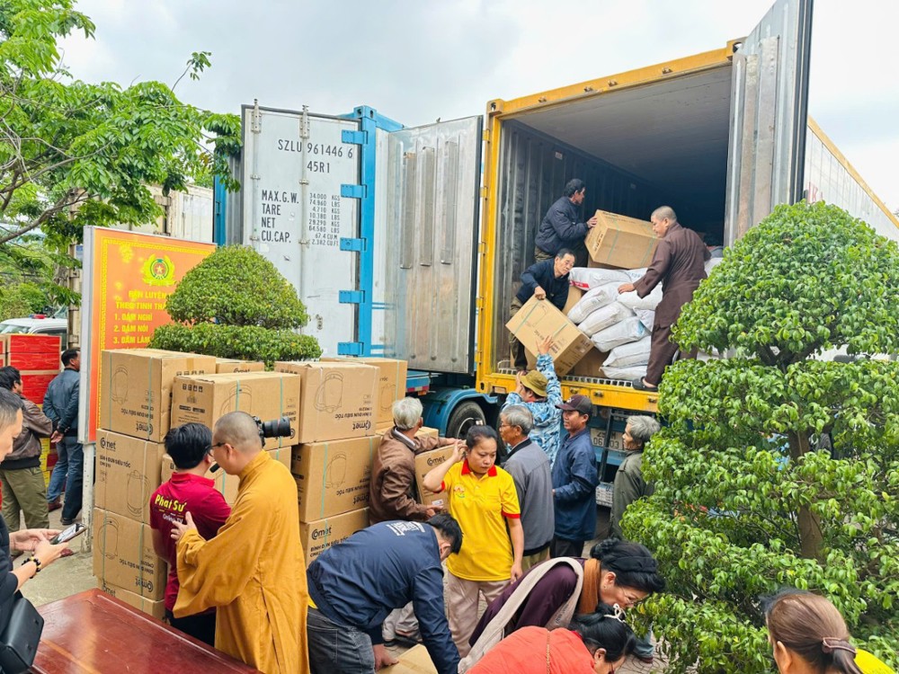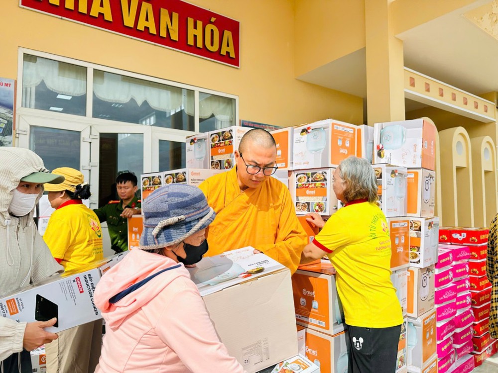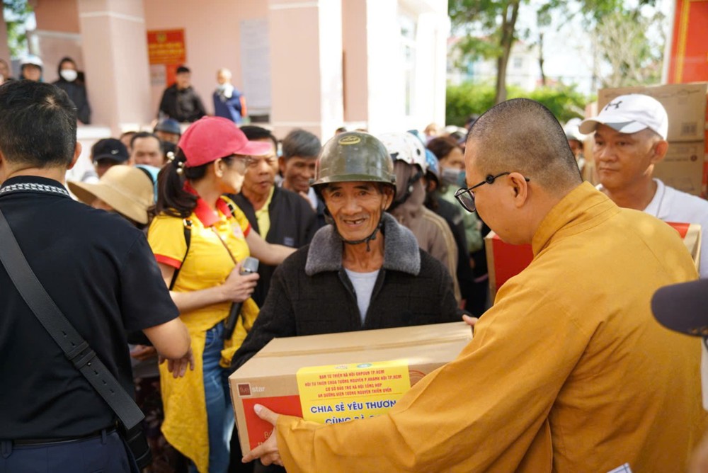 Dưới sự hướng dẫn của Thượng tọa Thích Minh Phú – Ủy viên Hội đồng Trị sự GHPGVN, Phó ban Thường trực Ban Từ thiện xã hội GHPGVN TP.HCM, Chủ tịch Hội Từ thiện chùa Tường Nguyên, cùng chư Tôn đức Tăng Ni và đông đảo Phật tử, đoàn từ thiện đã không quản ngại đường xa, mang theo tấm lòng sẻ chia của Phật tử miền Nam đến với đồng bào vùng thiên tai.