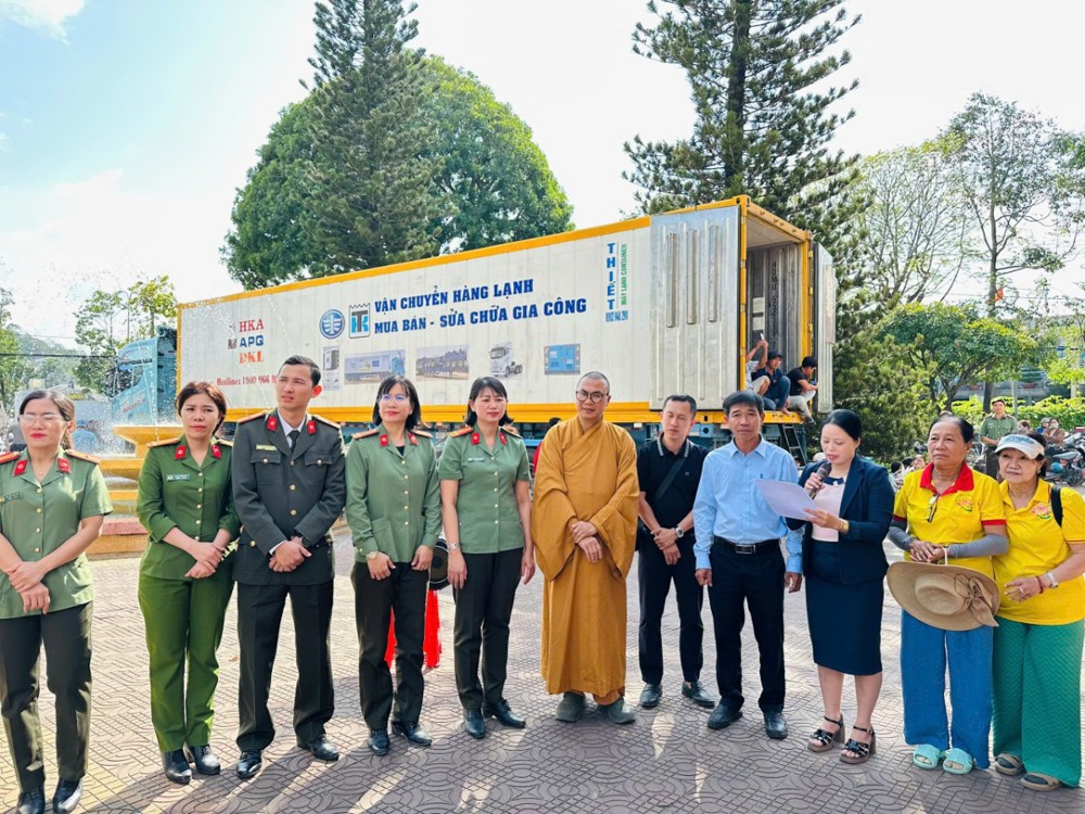 Tiếp nối hành trình, trong hai ngày 09–10/01/2026, Hội Từ thiện chùa Tường Nguyên đã đến tỉnh Đắk Lắk, trao hơn 1.500 phần quà đến bà con tại nhiều địa phương. Với sự phối hợp chặt chẽ của chính quyền và lực lượng Công an tỉnh, các chuyến xe container và xe tải đã lần lượt vận chuyển hàng hóa đến các điểm tập kết, đảm bảo việc trao quà diễn ra an toàn, đúng đối tượng.