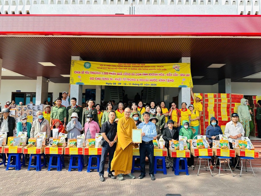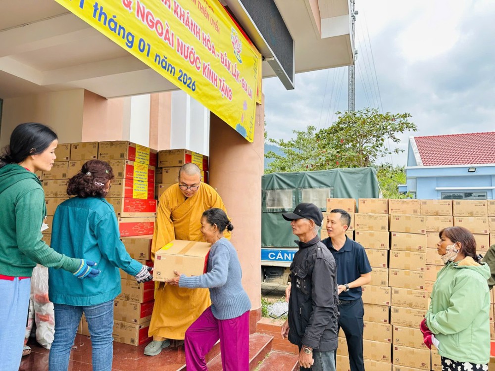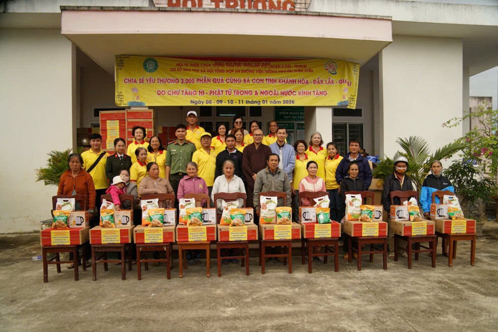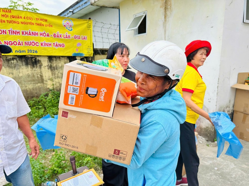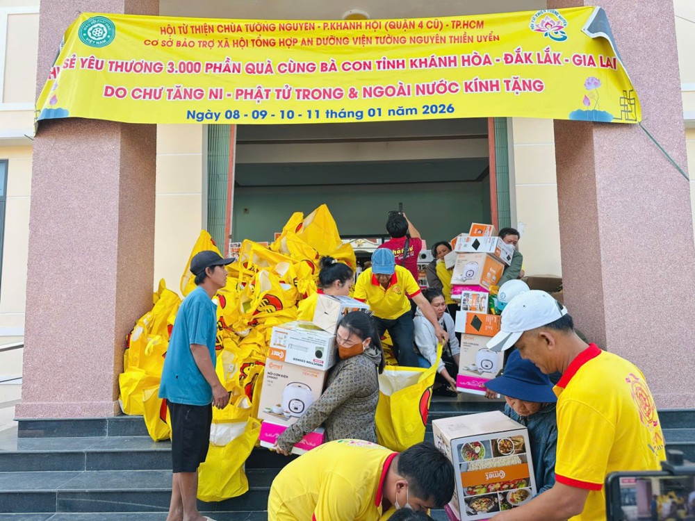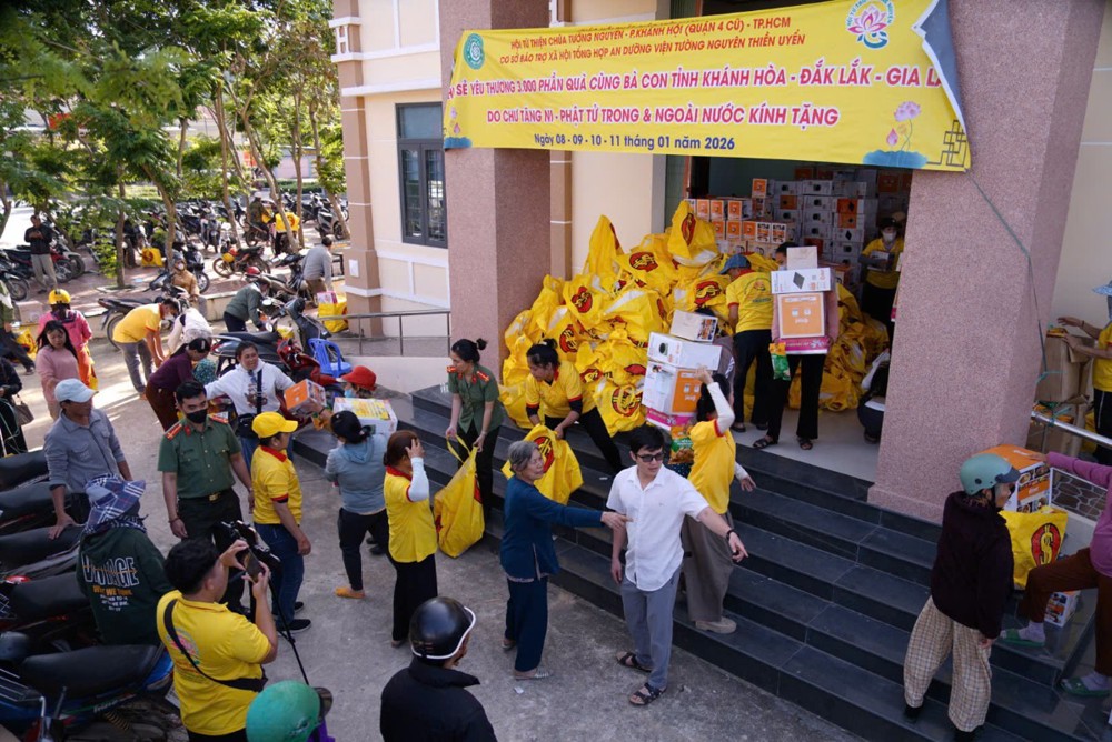 Ngày 08/01/2026, phái đoàn đã đến tỉnh Khánh Hòa, điểm dừng chân đầu tiên trong hành trình thiện nguyện. Tại đây, đoàn đã trao tặng 500 phần quà cho bà con tại xã Tây Khánh Vĩnh và Trung Khánh Vĩnh – những địa phương chịu ảnh hưởng nặng nề bởi mưa lũ, với phần lớn cư dân là đồng bào dân tộc thiểu số, đời sống còn nhiều khó khăn.